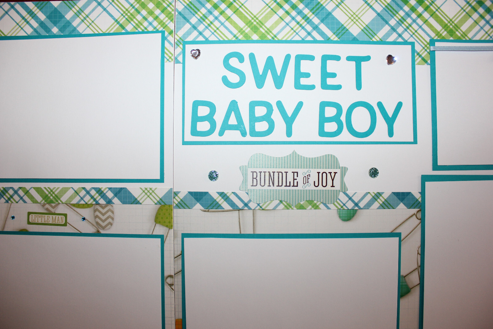 Baby boy scrapbook pages 2 each 12 x 12 handmade Sweet Baby Boy assembled