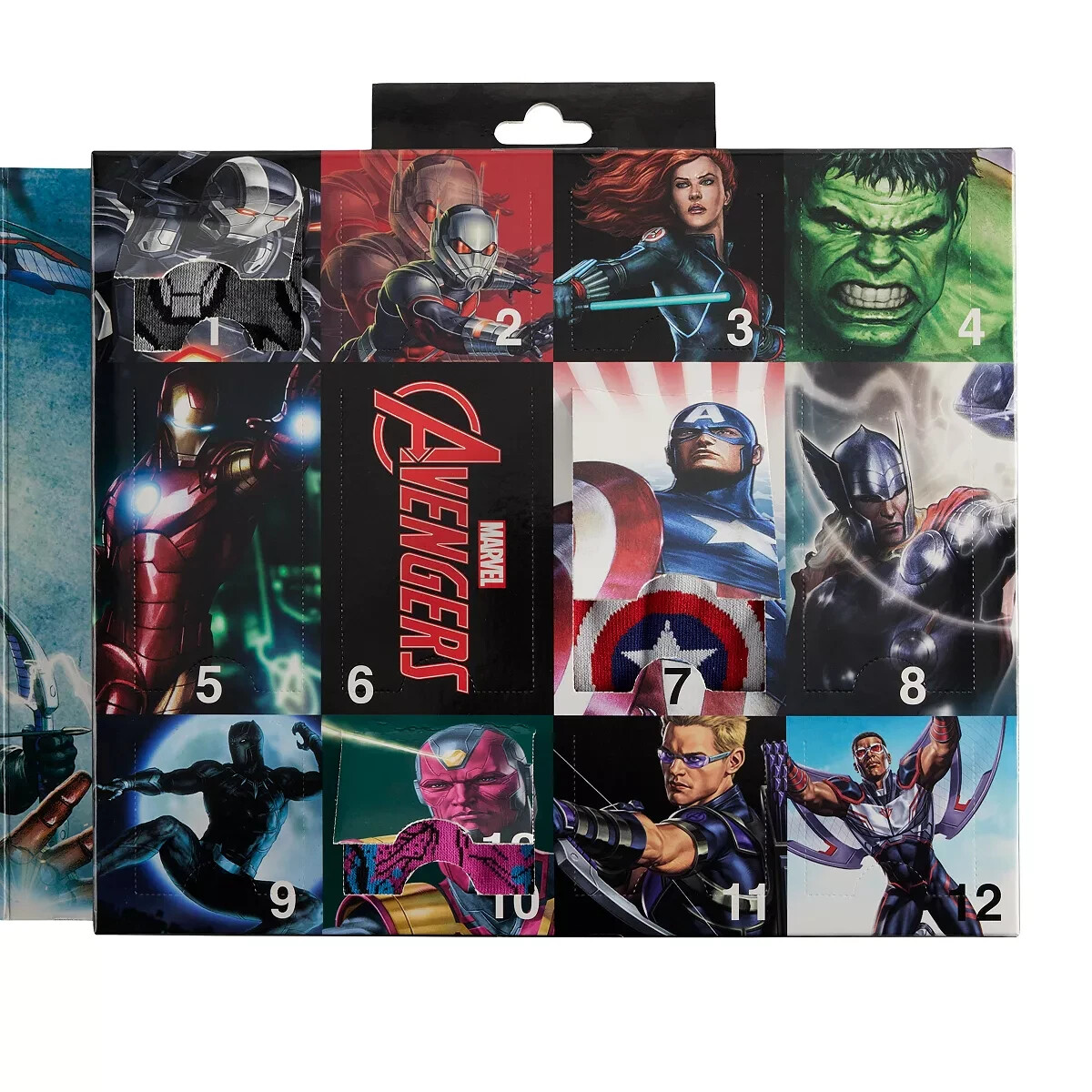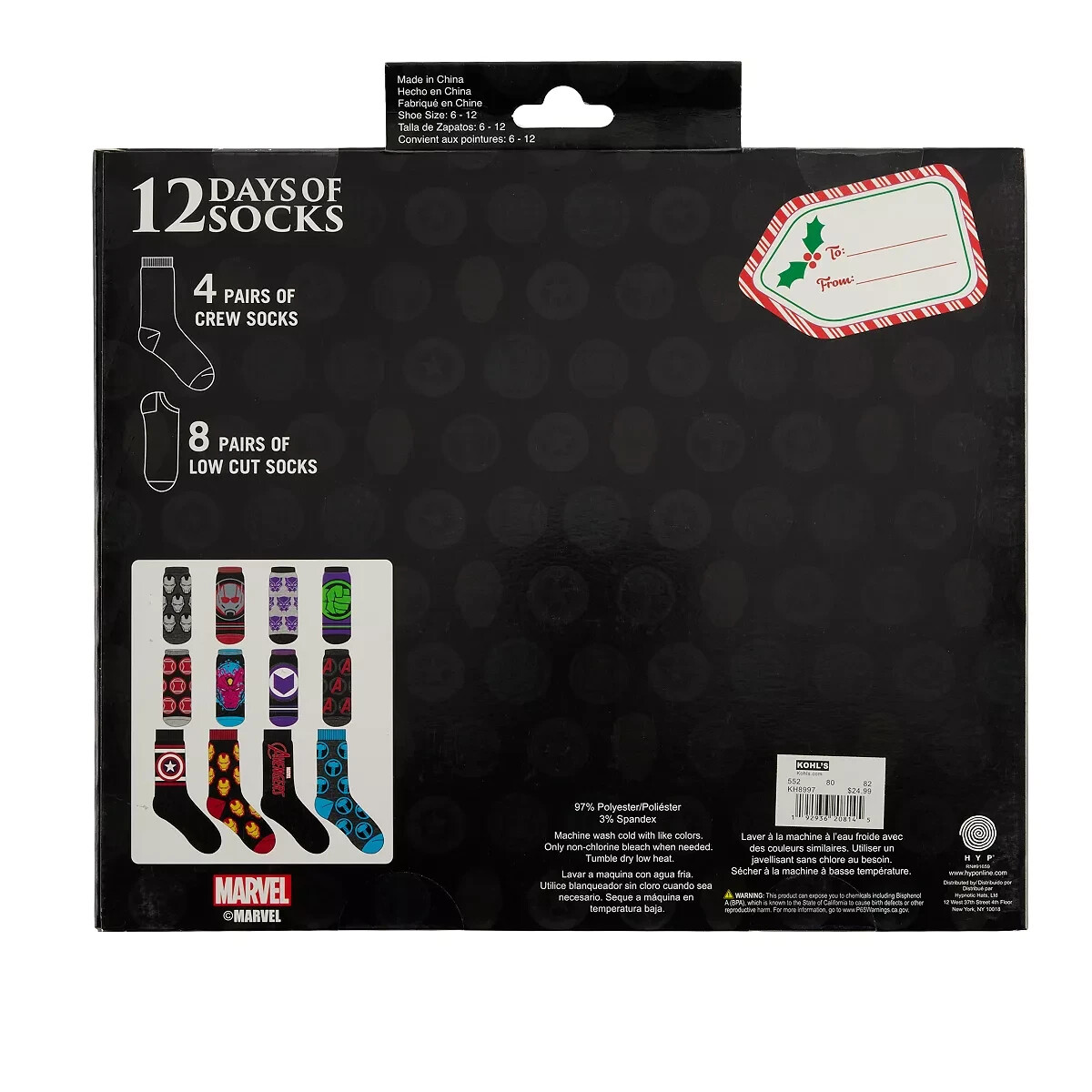 Men's Marvel Avengers 12 Pairs of Socks Christmas Gift Box Shoe Size 6-12 NEW