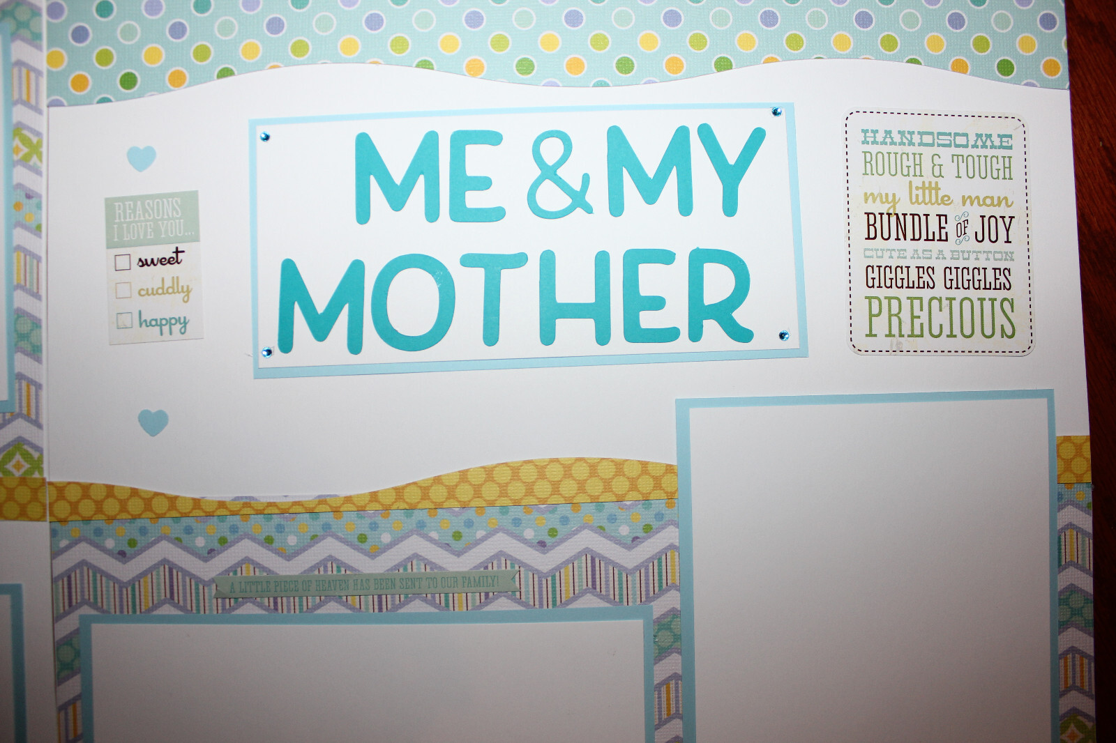 Baby boy scrapbook pages 2, each 12 x 12 handmade assembled Me My Mother