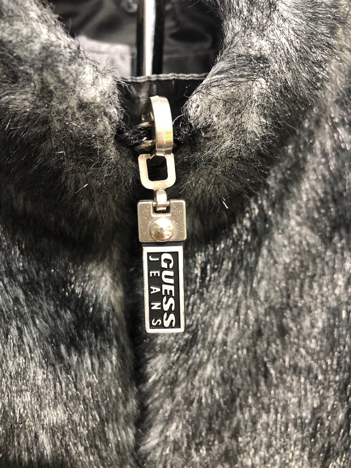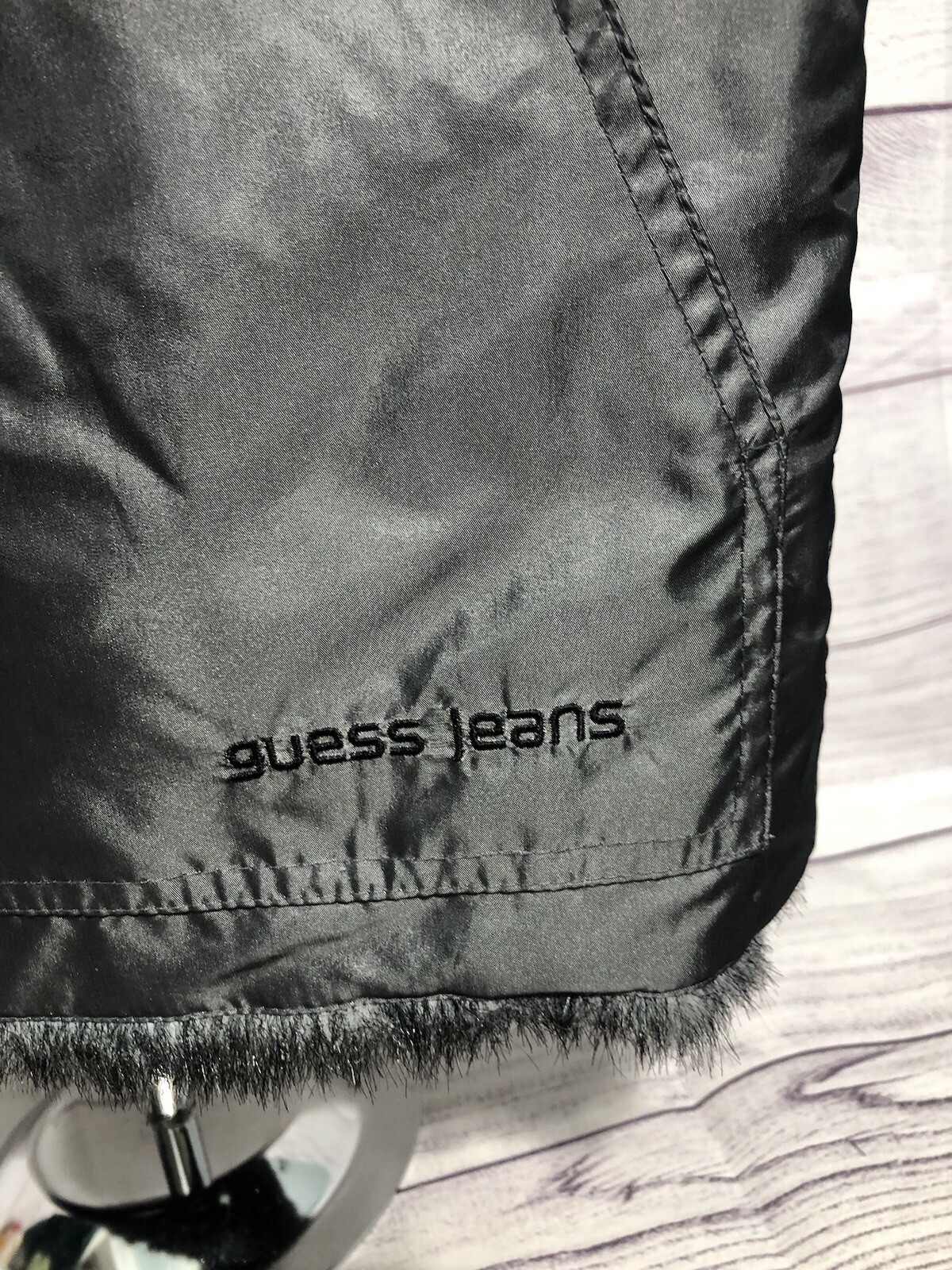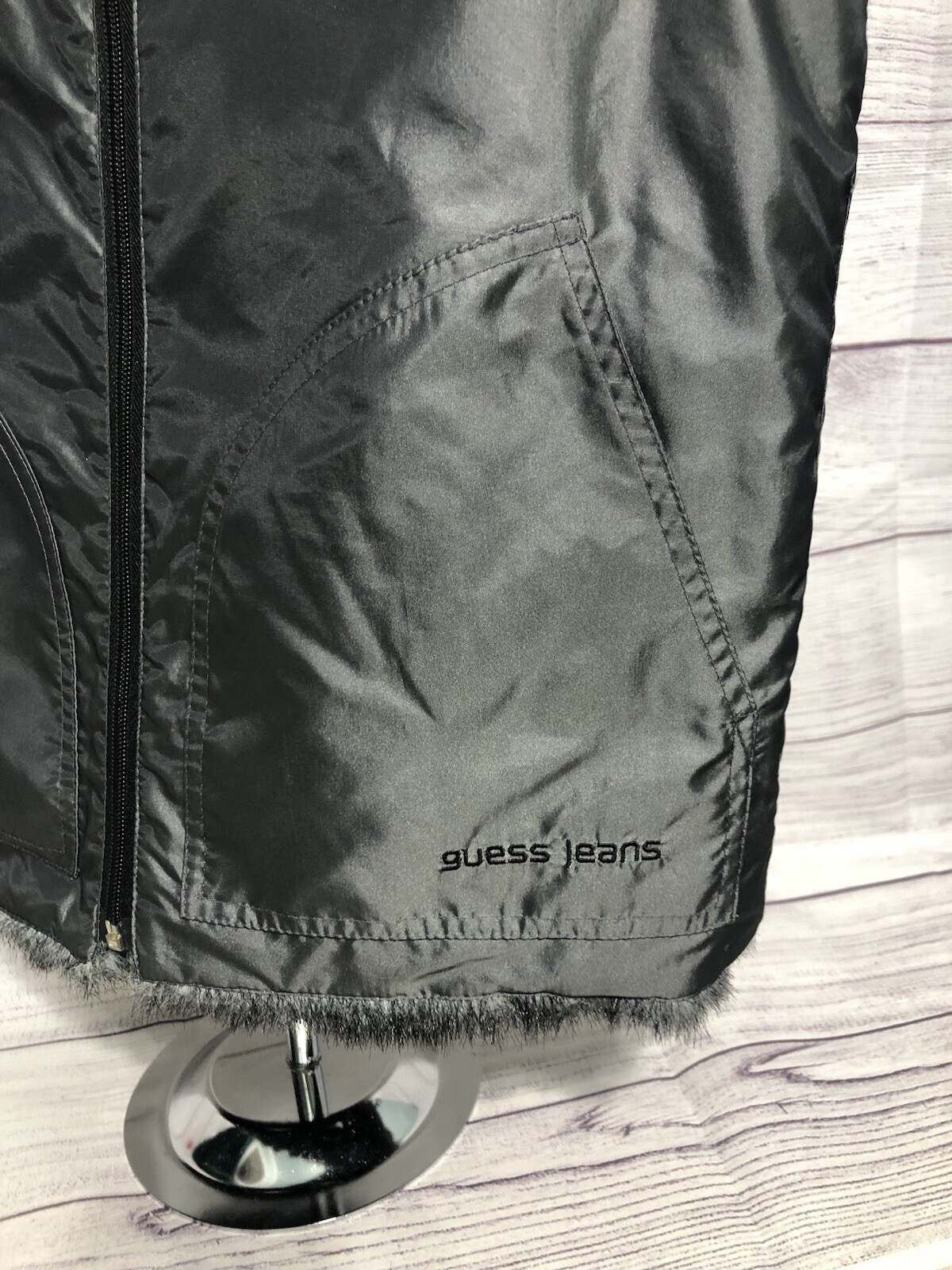 как выглядит GUESS JEANS GRAY/PEWTER FAUX FUR ZIP FRONT REVERISBLE VEST Sz S EUC See Descrip фото