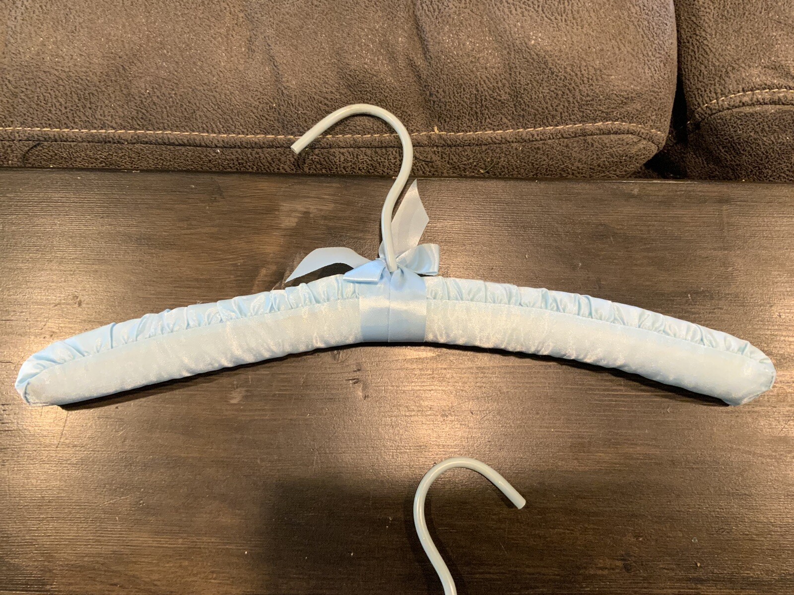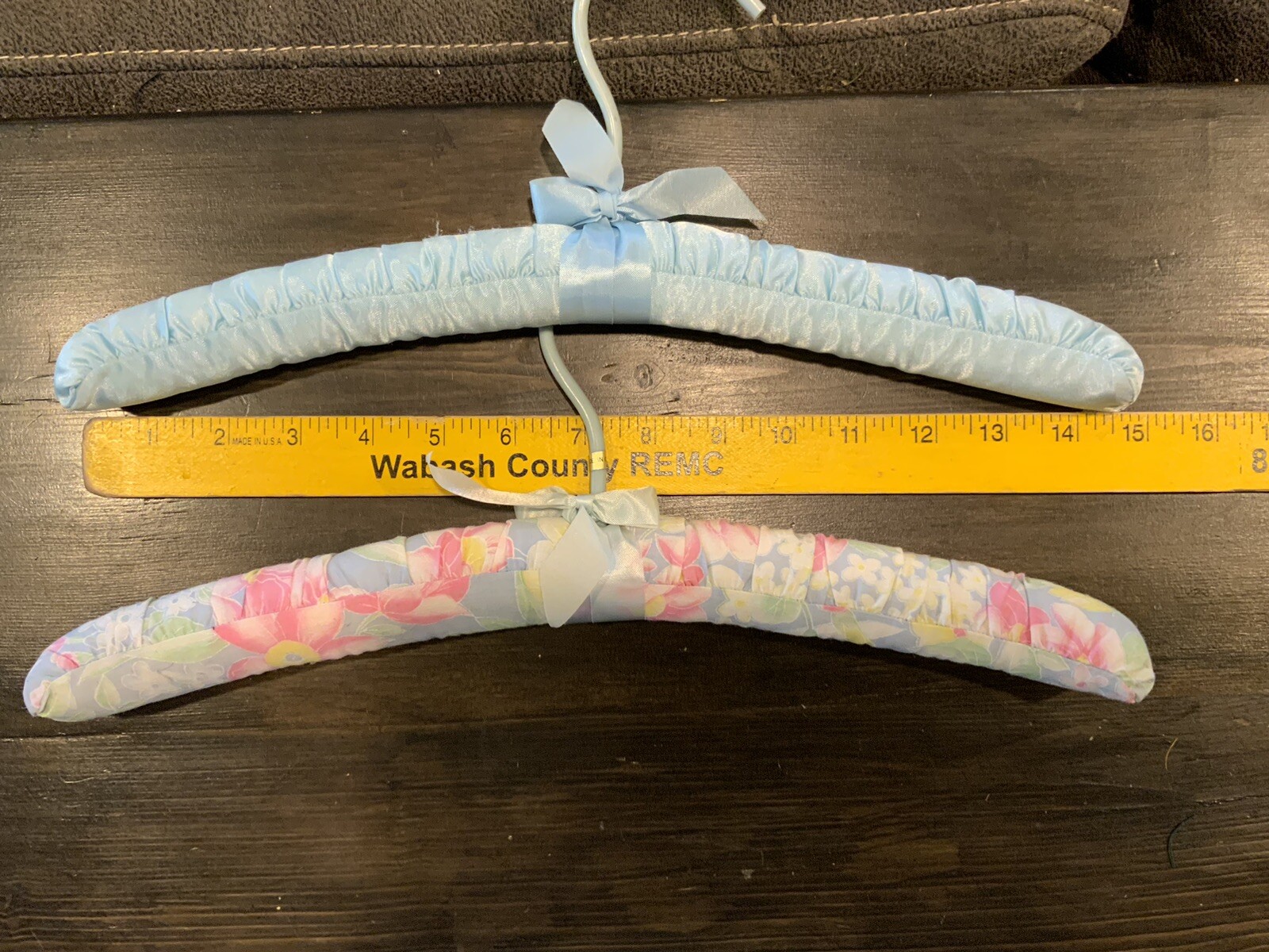 как выглядит Satin Fabric Cotton Padded Coat Hangers Light Blue Floral Vintage Lot of 2 фото