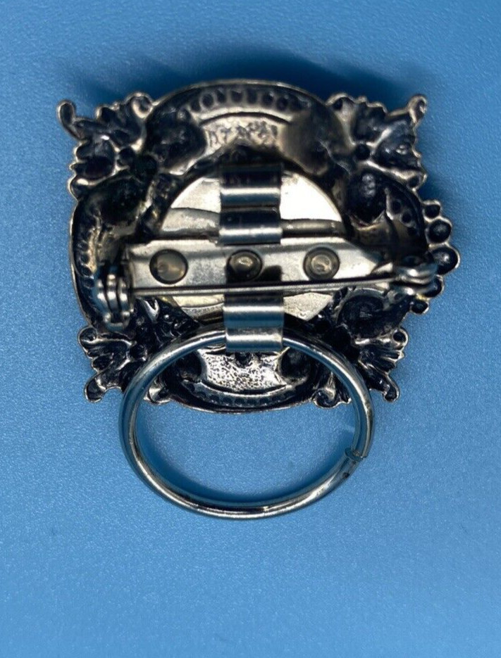 как выглядит Scrolled Flower Design Antiqued Silver-Tone Eye-Glass Brooch ID Badge Holder VTG фото