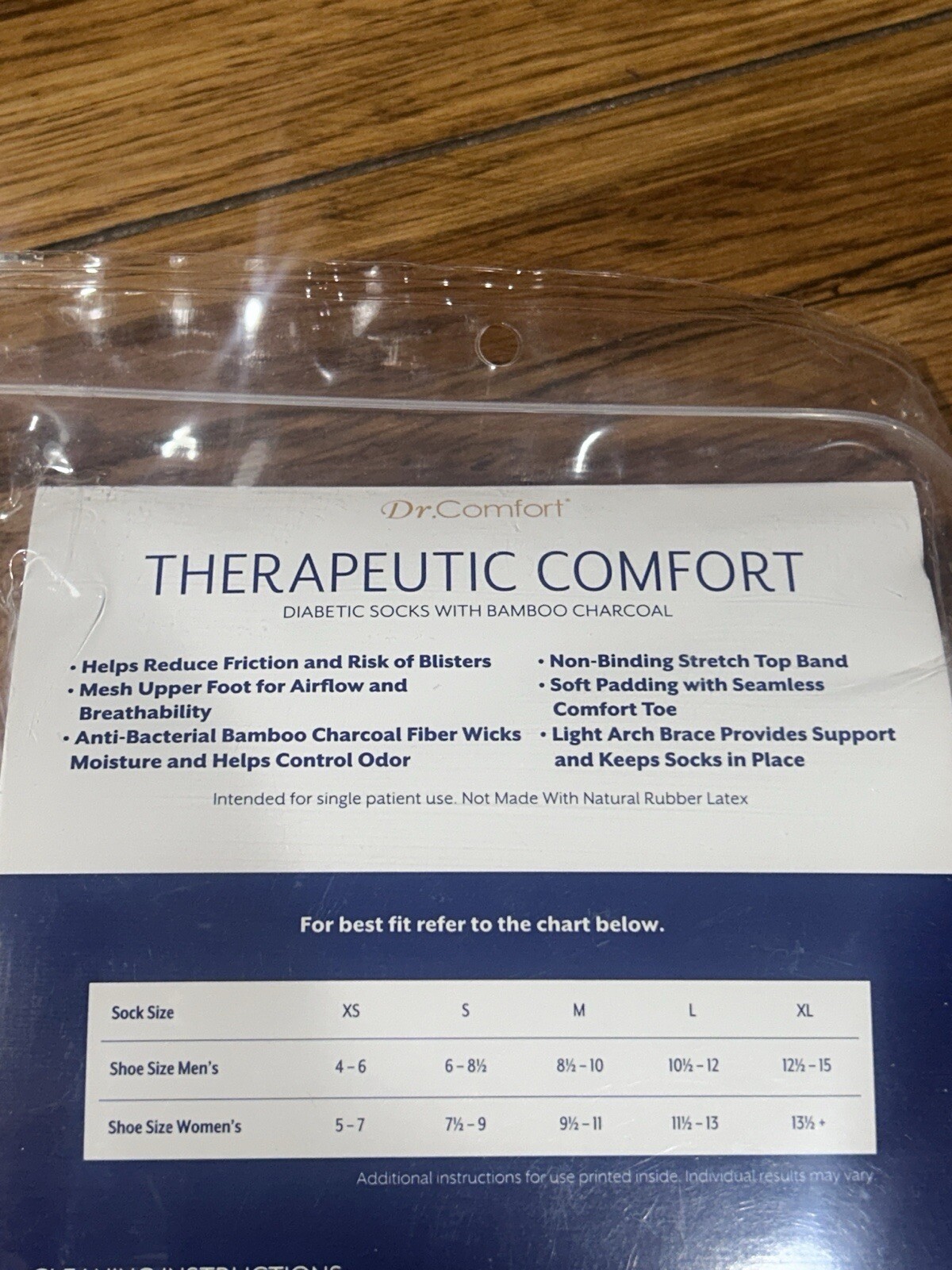 NEW Dr. Comfort DIABETIC Therapeutic Socks Bamboo Charcoal White XL Unisex