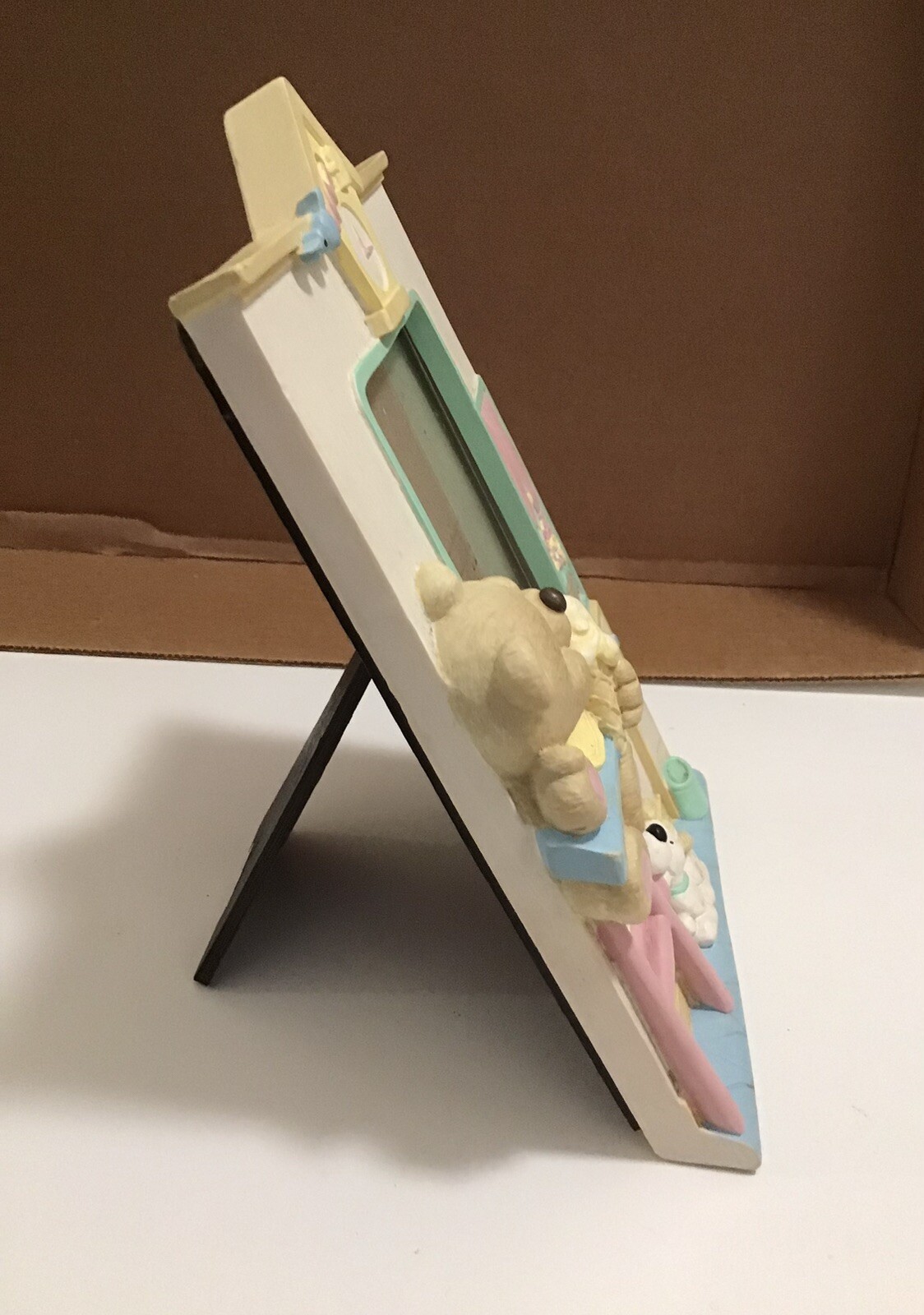 Baby Picture 3D Frame Teddy Bear And Dog pastels by Burnes. Vintage 1992.