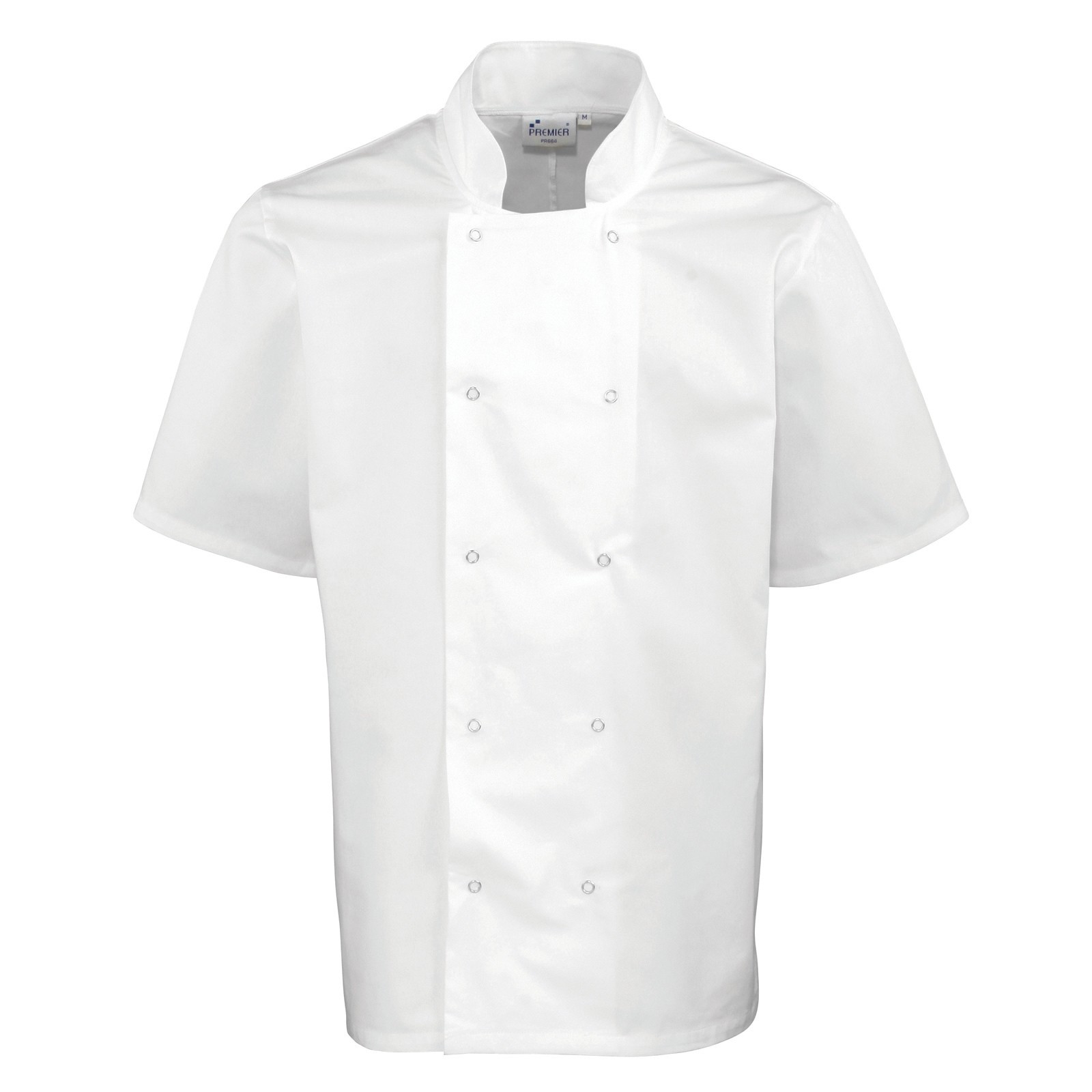 Premier Studded Front Short Sleeve Chef's Jacket PR664 - Kitchen Cook Workwear