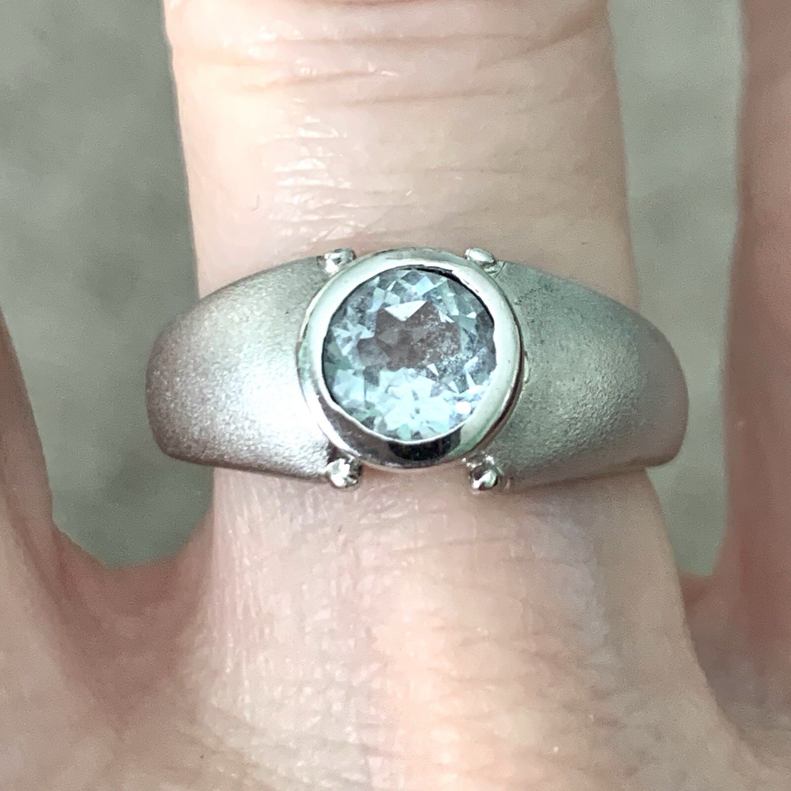 925 Sterling Silver Genuine Blue Topaz Bezel Set Gemstone Unisex Ring Size 6 3/4