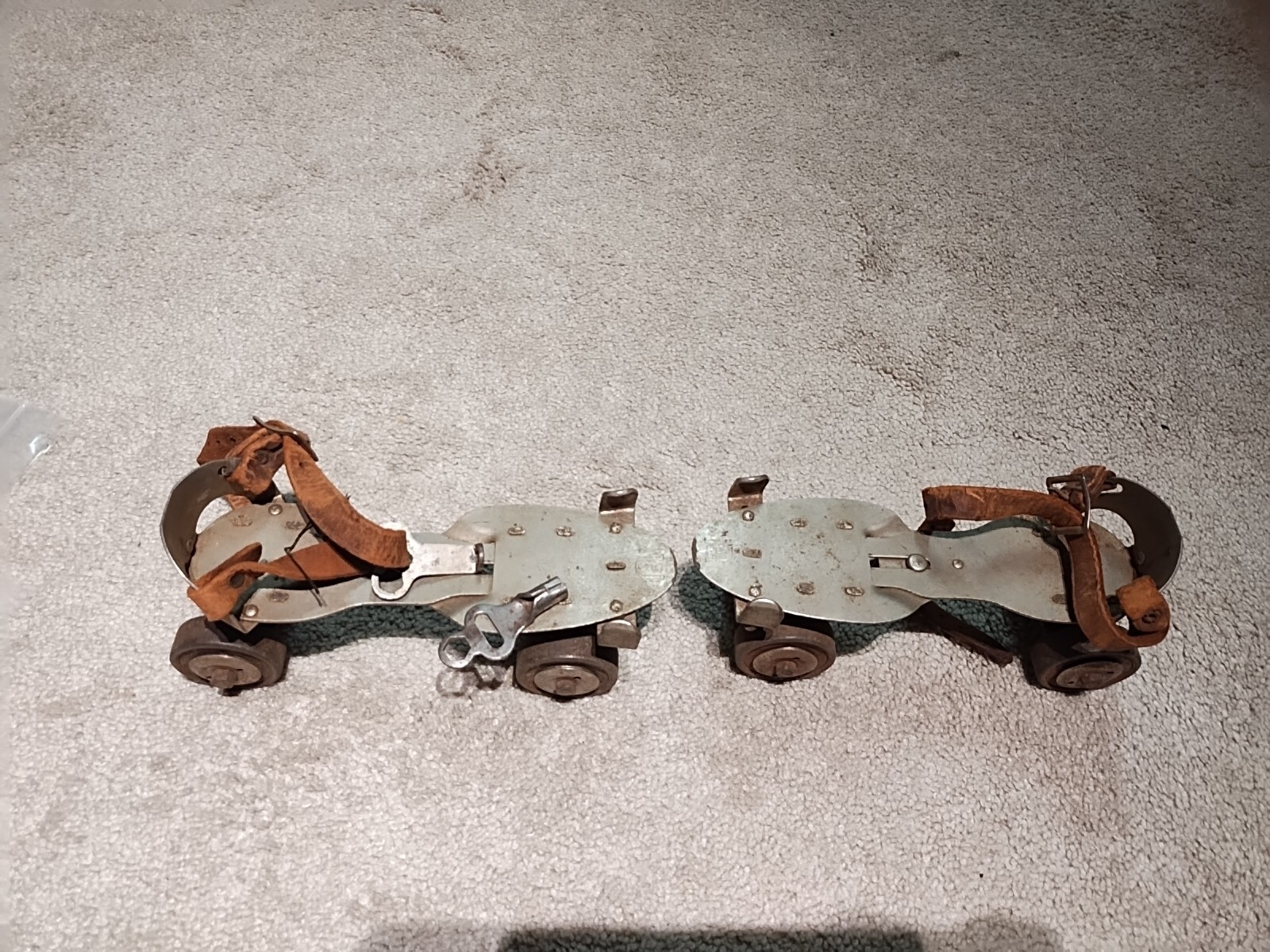 как выглядит PAIR OF VINTAGE STEEL, ADJUSTABLE SHOE CLAMP SKATES. With Keys фото