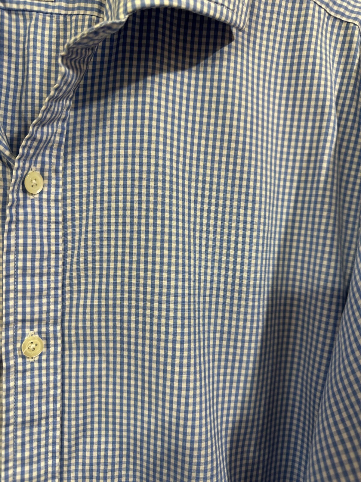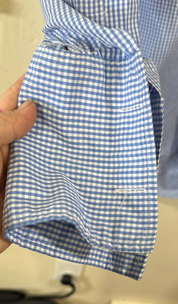 как выглядит TM Lewin Mens Dress Shirt Sz 17 36LS BD French Cuffs Blue Mini Gingham Check EUC фото