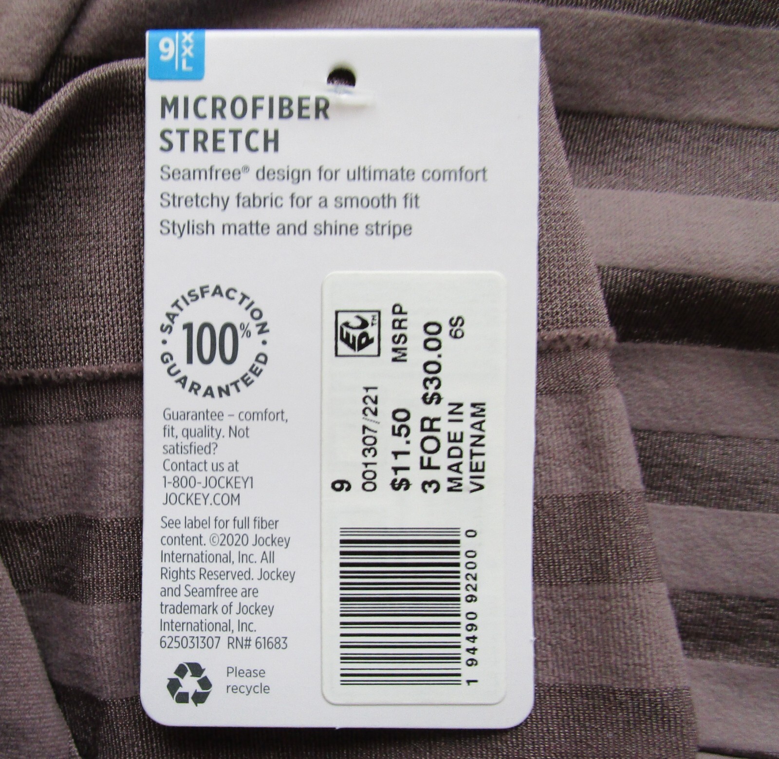 Jockey Matte Shine Hipster Pantie 3 Pack Style 001307 Size 9 XXL NWT MSRP 30