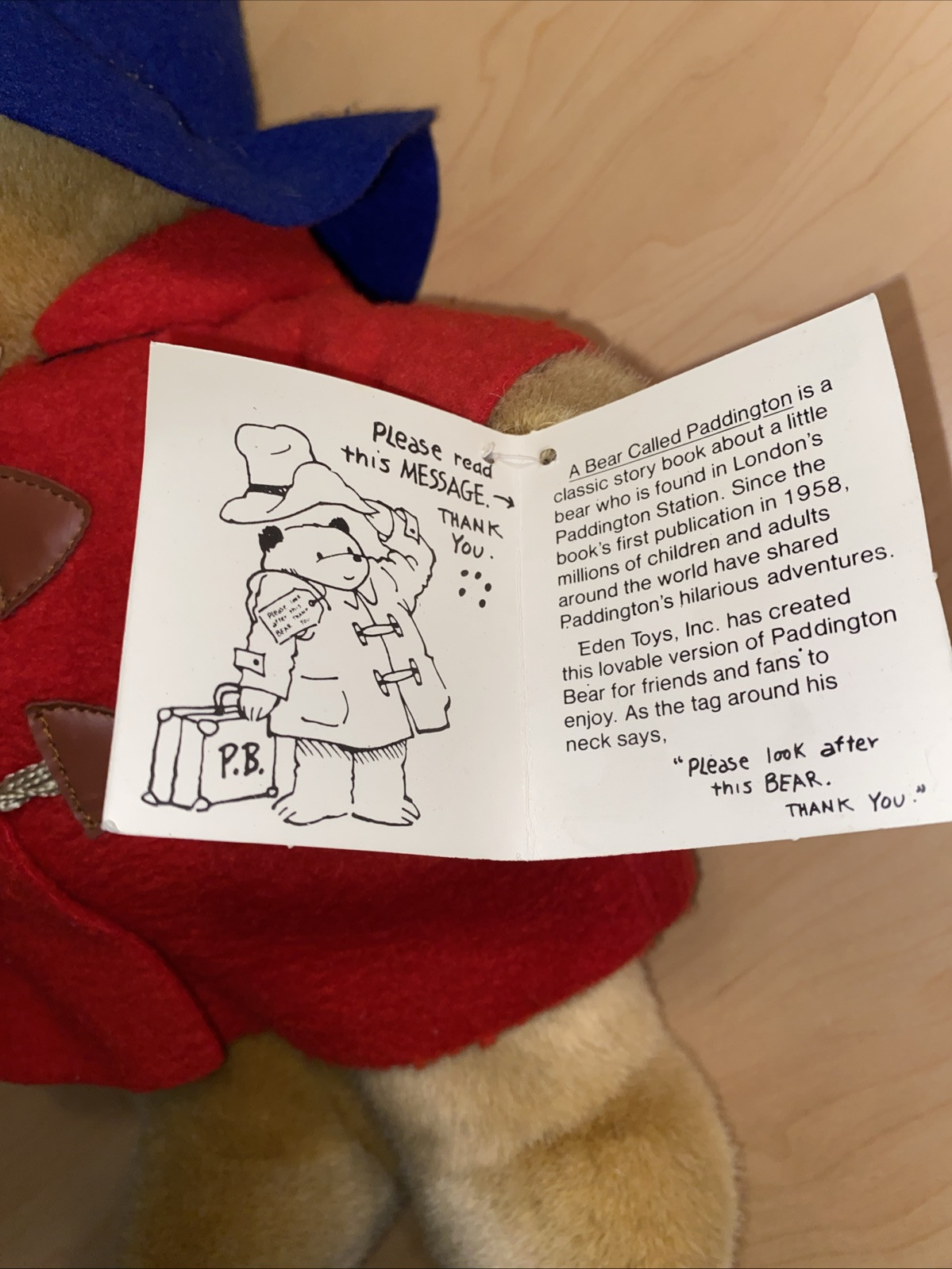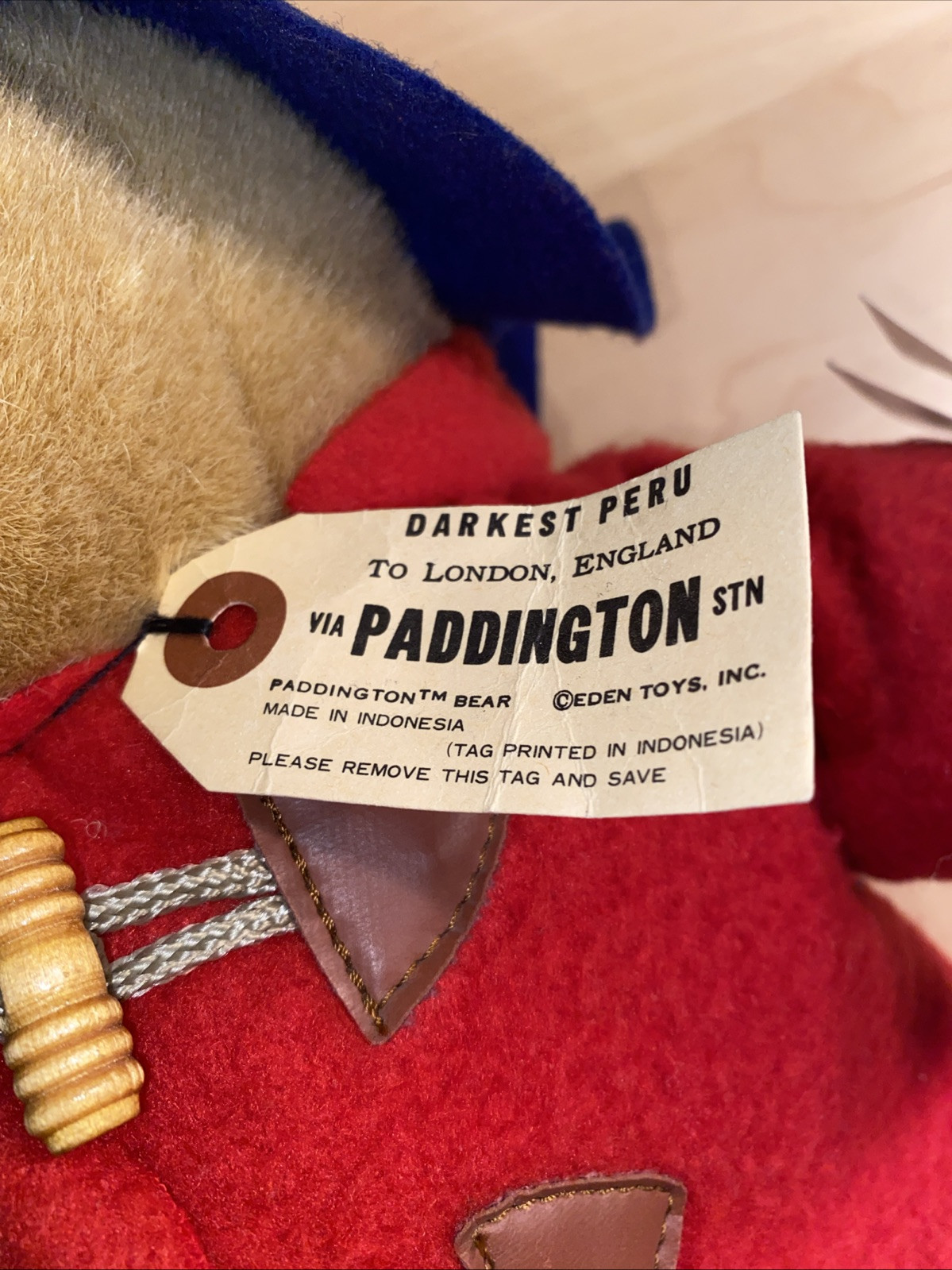Vintage Eden Paddington Bear Plush Blue Hat Red Coat 17 w/Tag Darkest Peru