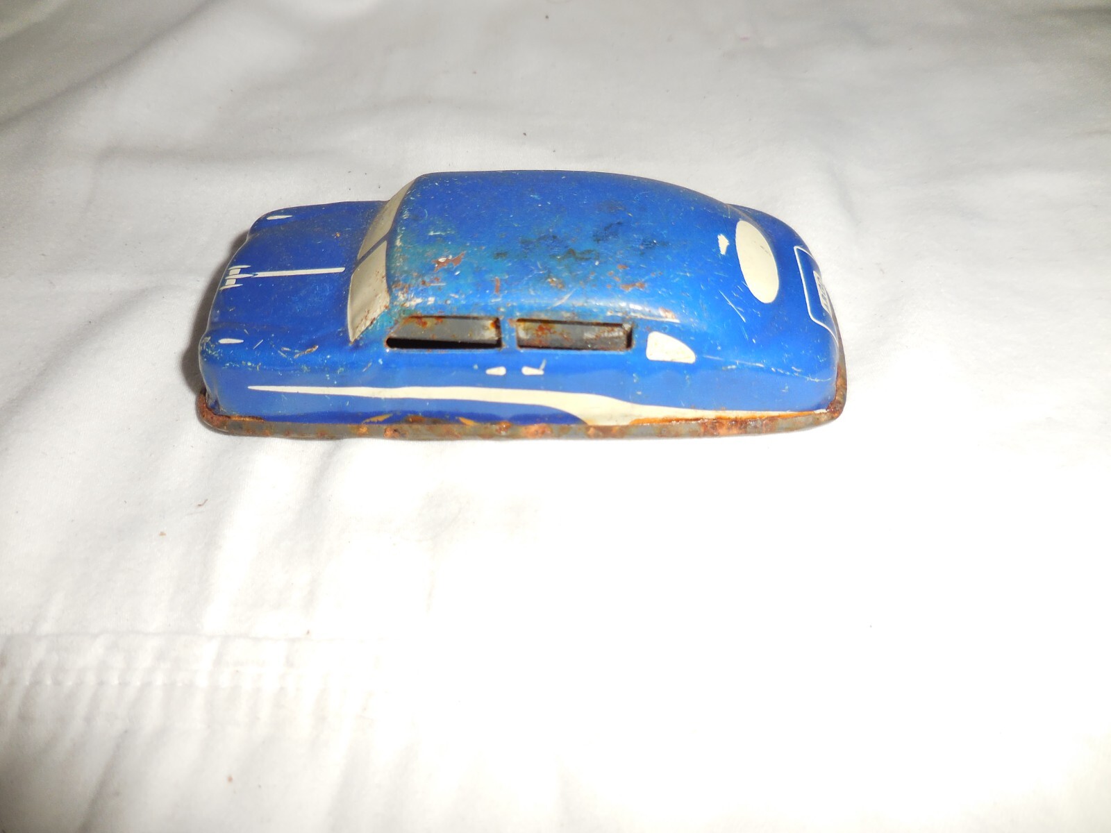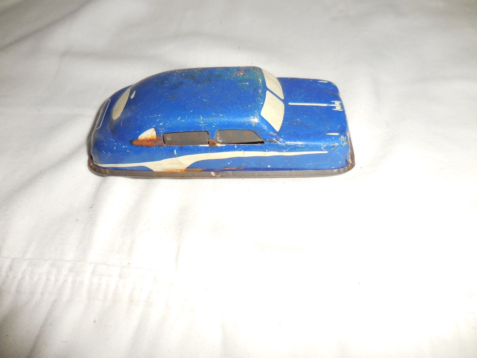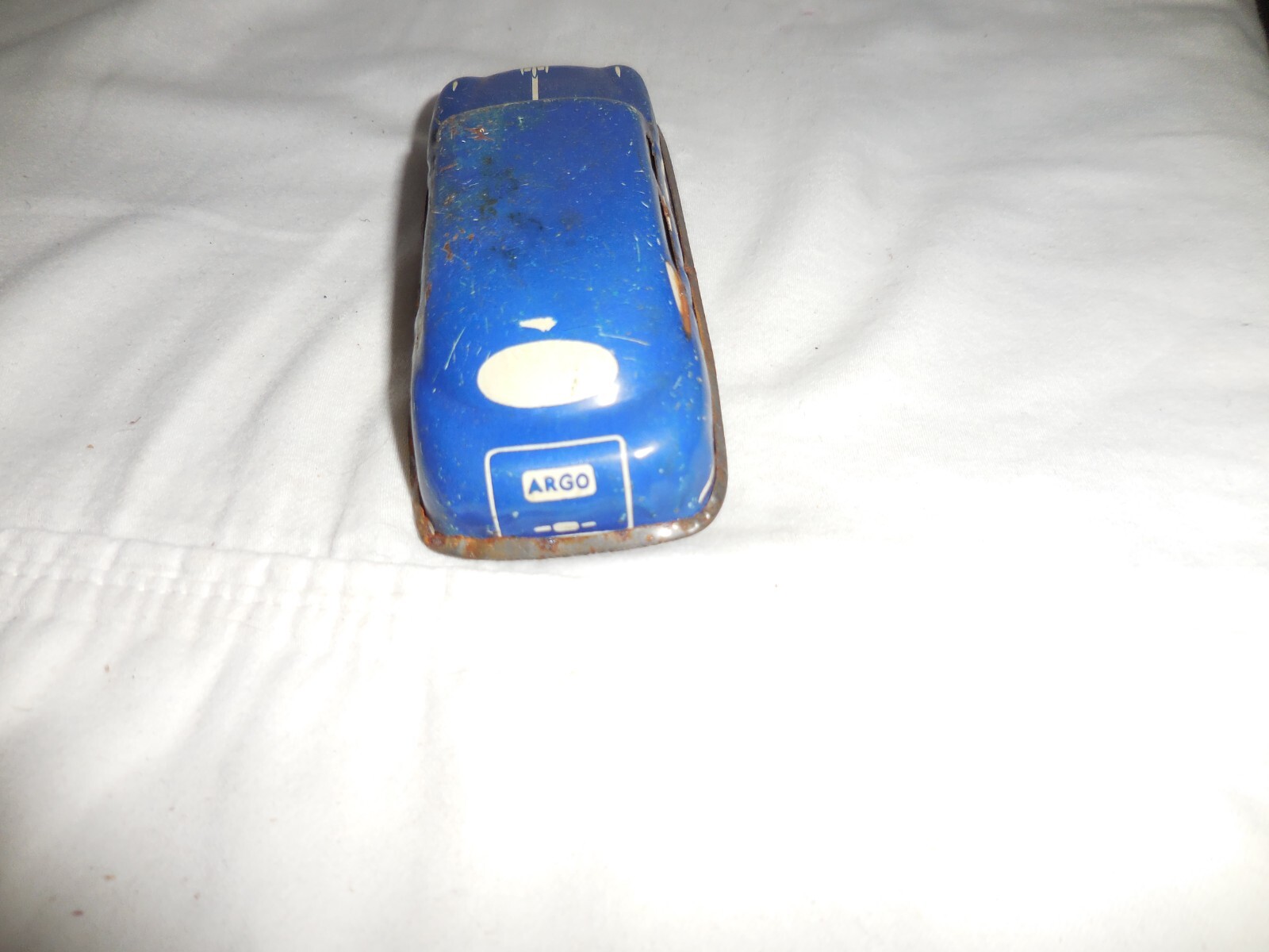 Argo Tin Lithograph Toy Sedan 4' Blue Car Play wear