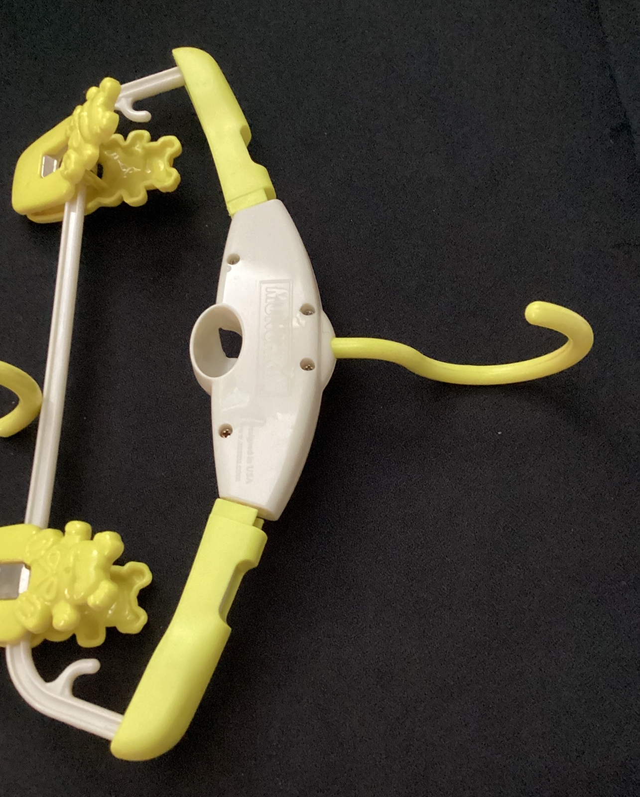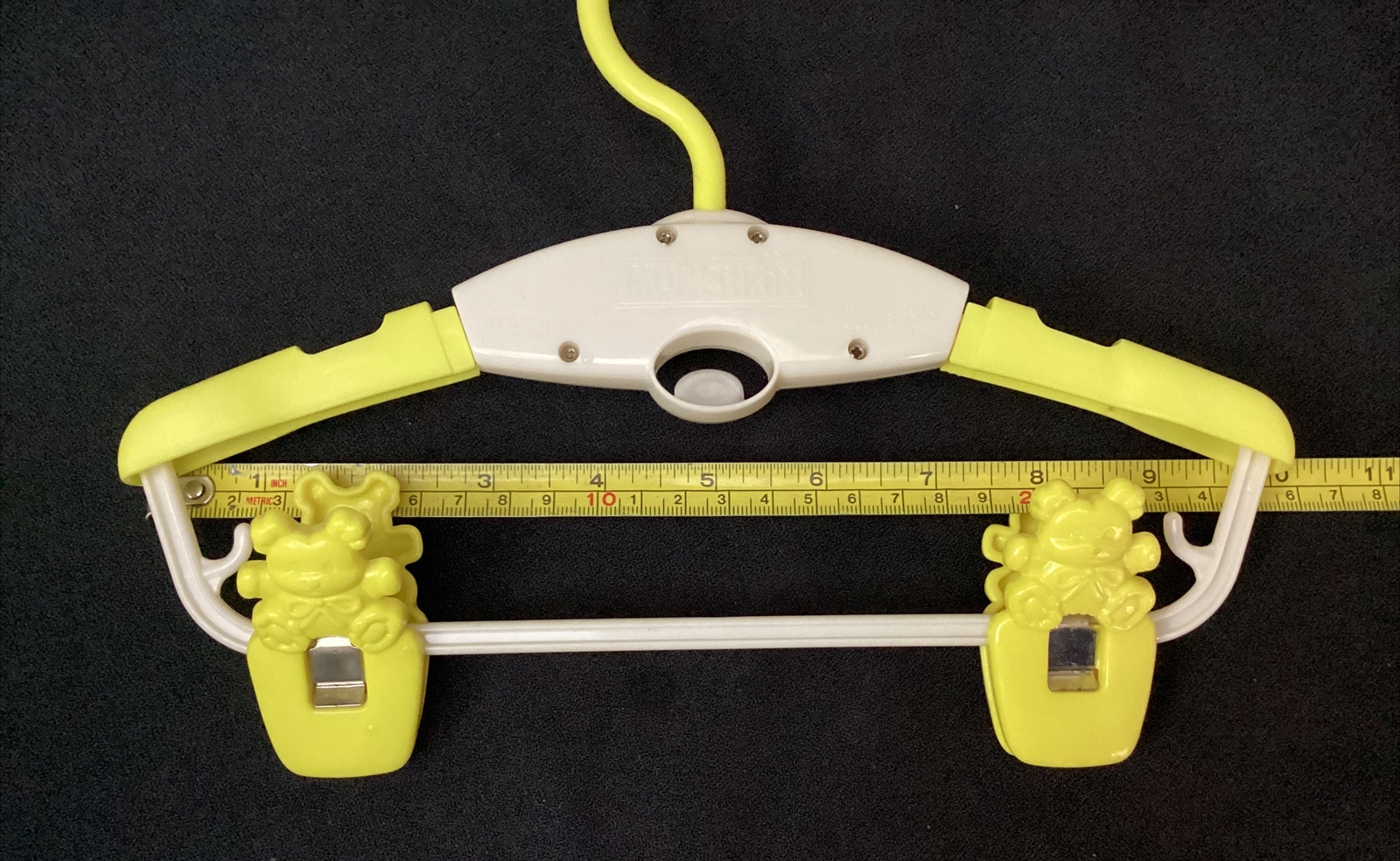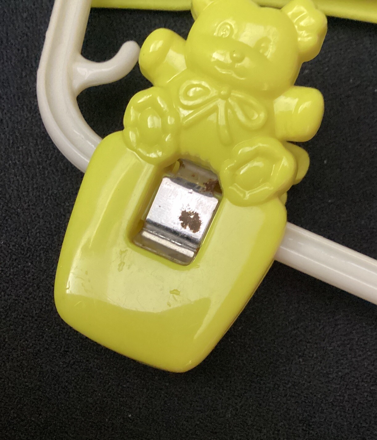 2 VINTAGE MUNCHKIN EXTENDABLE BABY CLOTHES HANGERS PLASTIC YELLOW TEDDY BEARS