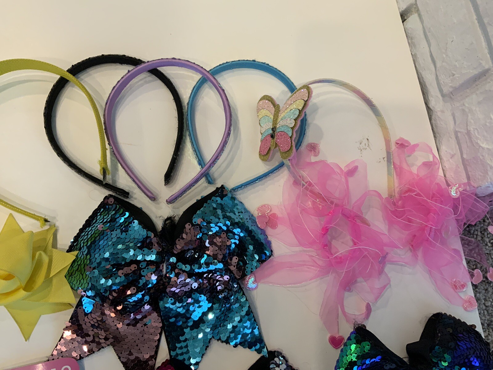 Girls Hair Bow Clips Bowtie Headbands, Sequins Flip Bows Princess Clips Lot