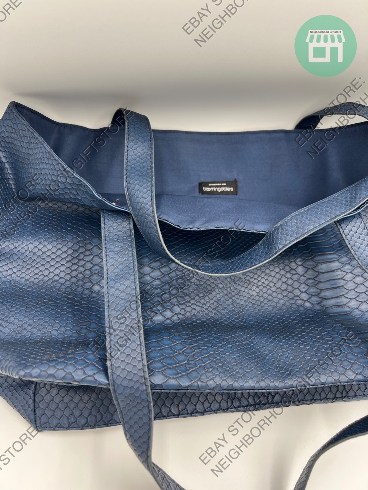 Bloomingdales Tote Bag BLUE Faux Leather LARGE Size 19x12x5 NEW PICTURES.