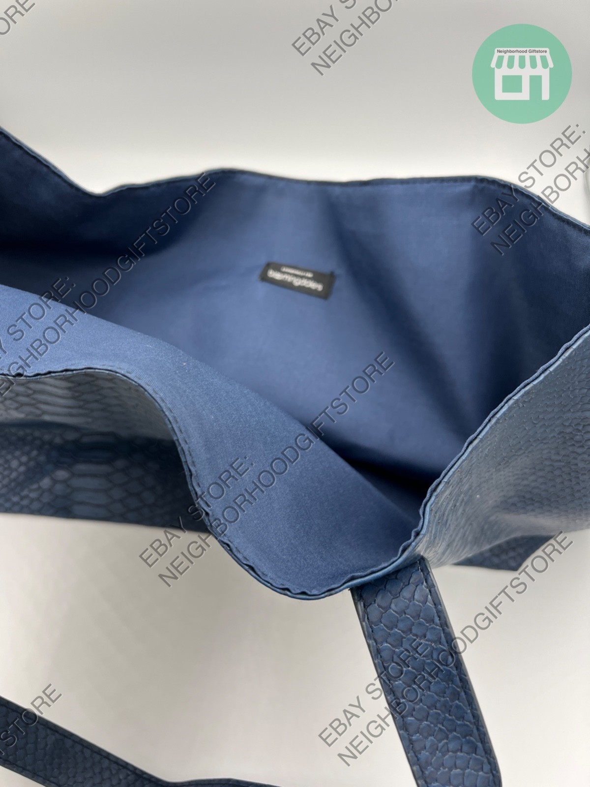 как выглядит Bloomingdales Tote Bag BLUE Faux Leather LARGE Size 19"x12"x5" NEW PICTURES. фото