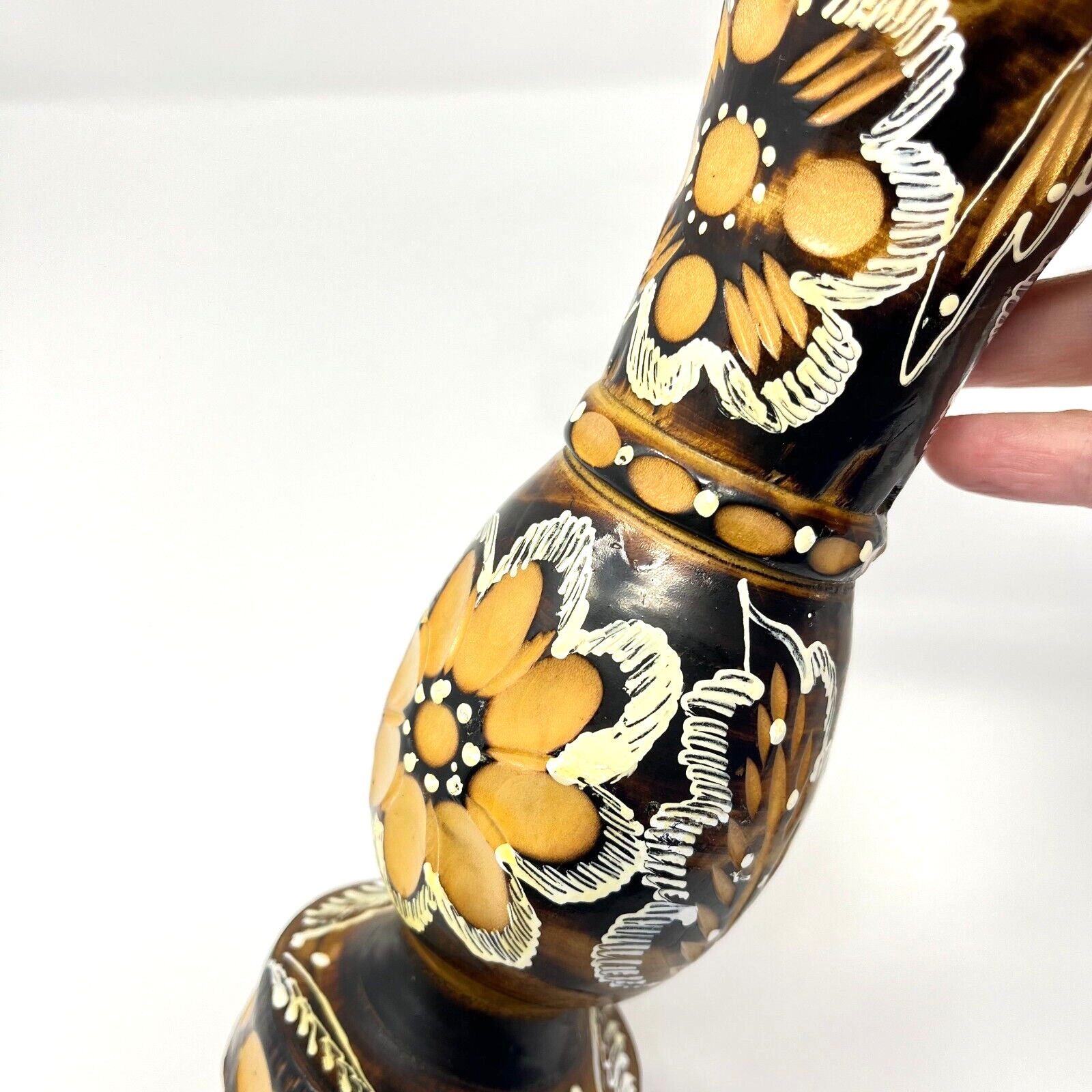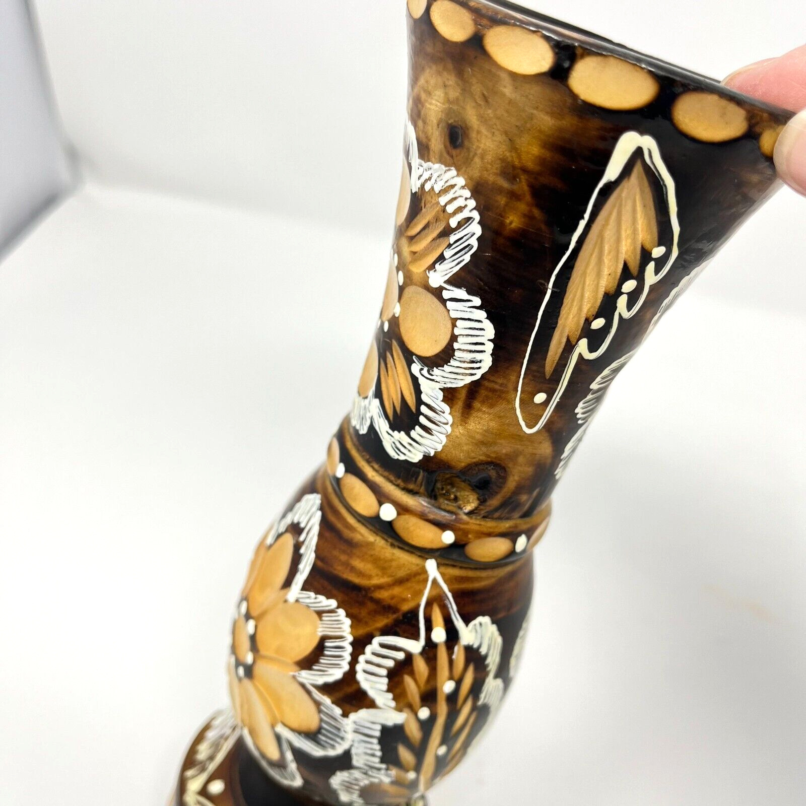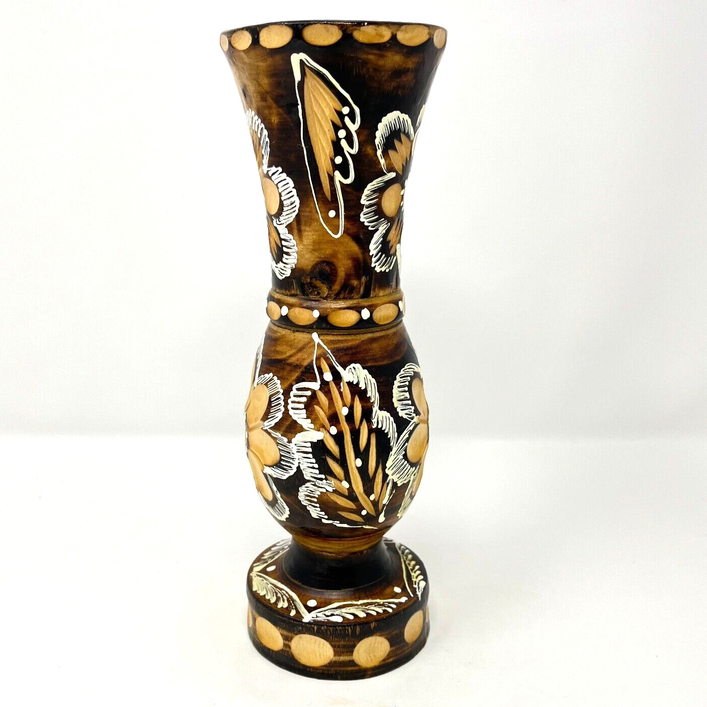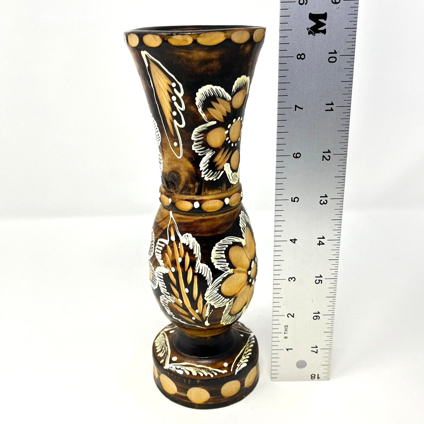 Vintage Hand Turned Carved Painted Wooden Decorative Vase Sculpture 8.5 Flowers