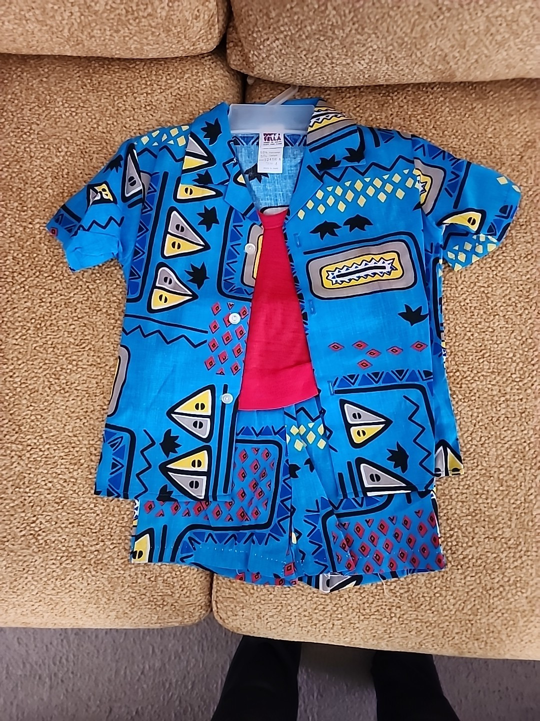как выглядит Vntg. Youth Boys Happy Fella Boys 2 pc. Cabana Set Top/Shorts Elastic Waist фото