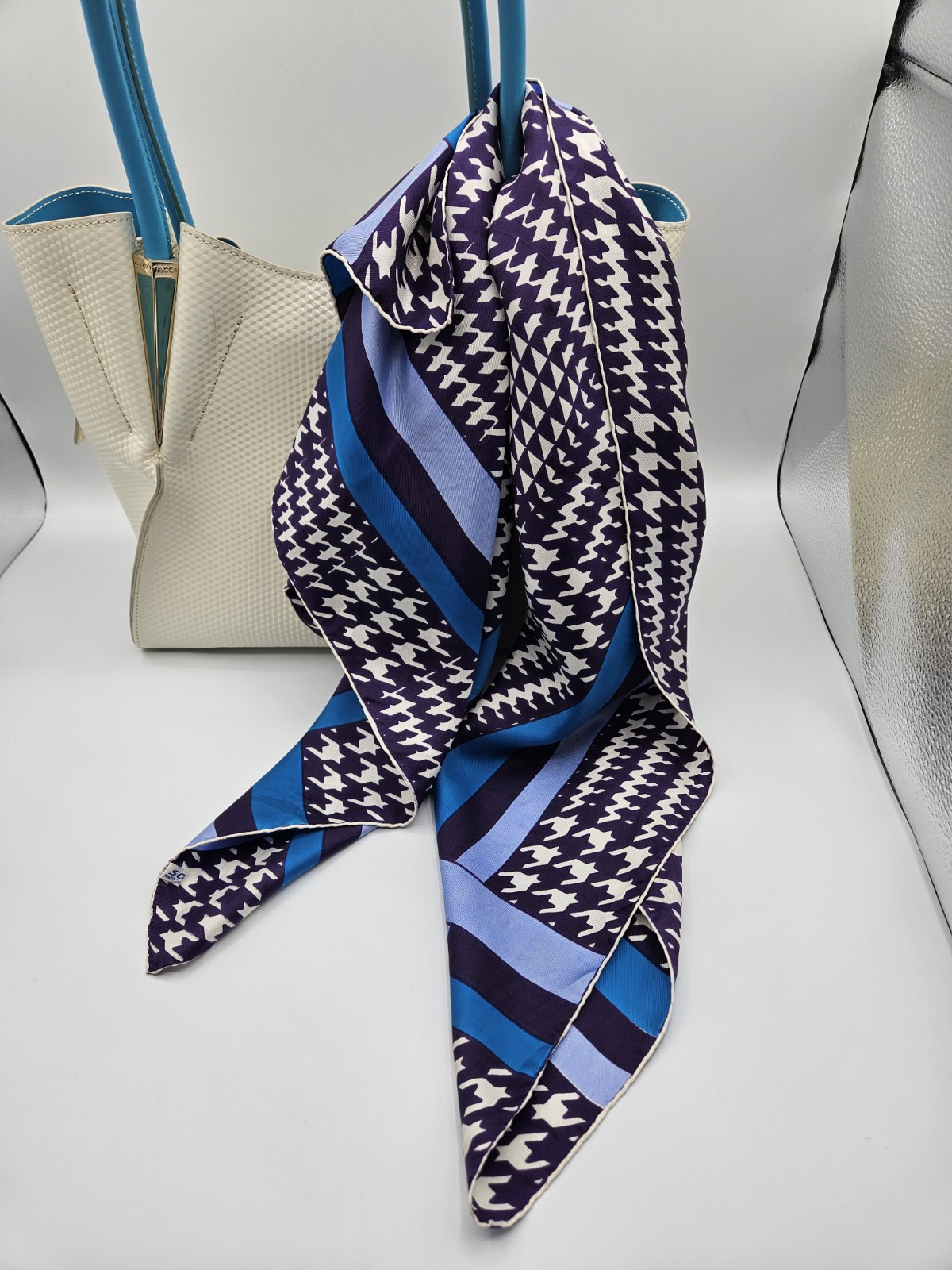 как выглядит Vintage Mademoiselle Ricci Paris France Houndstooth 100 Silk Scarf 30.5" Square фото