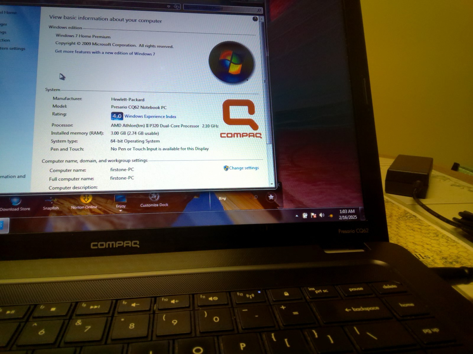 как выглядит Compaq Presario CQ62-220 AMD Athlon II Dual Core 2.1Ghz 320GBHdd 3GB Ram Win7 фото