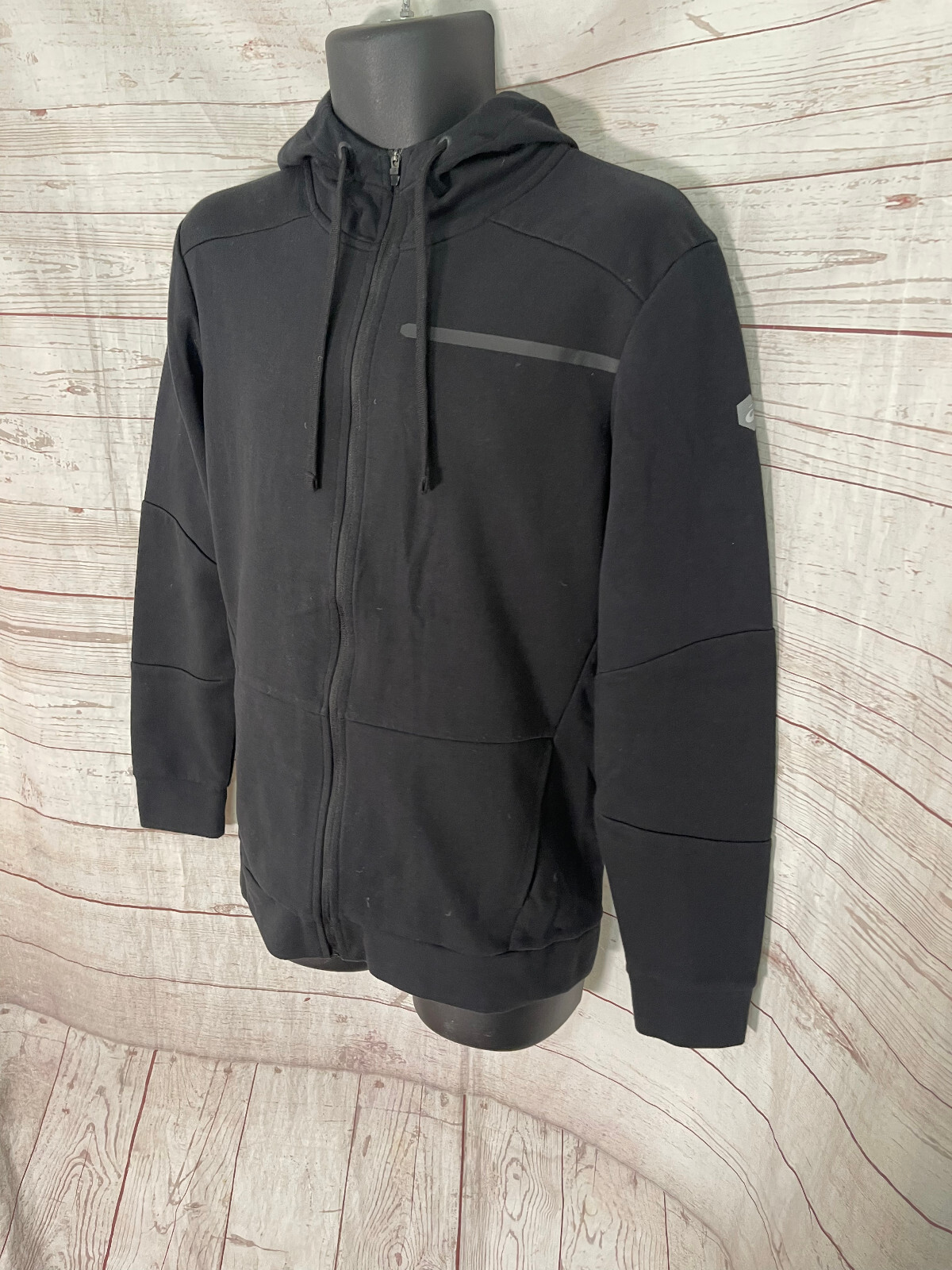 Asics Men s Black Full Zip Drawstring Hooded Active Wear Hoodie Size M