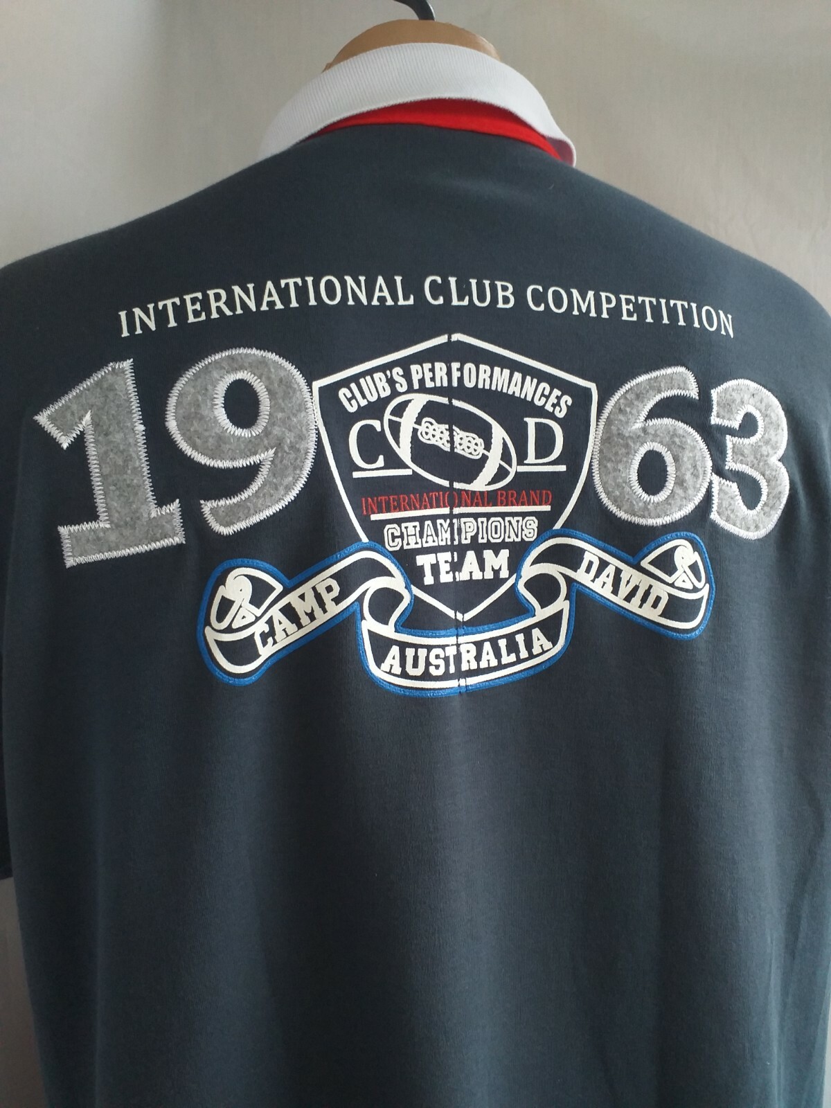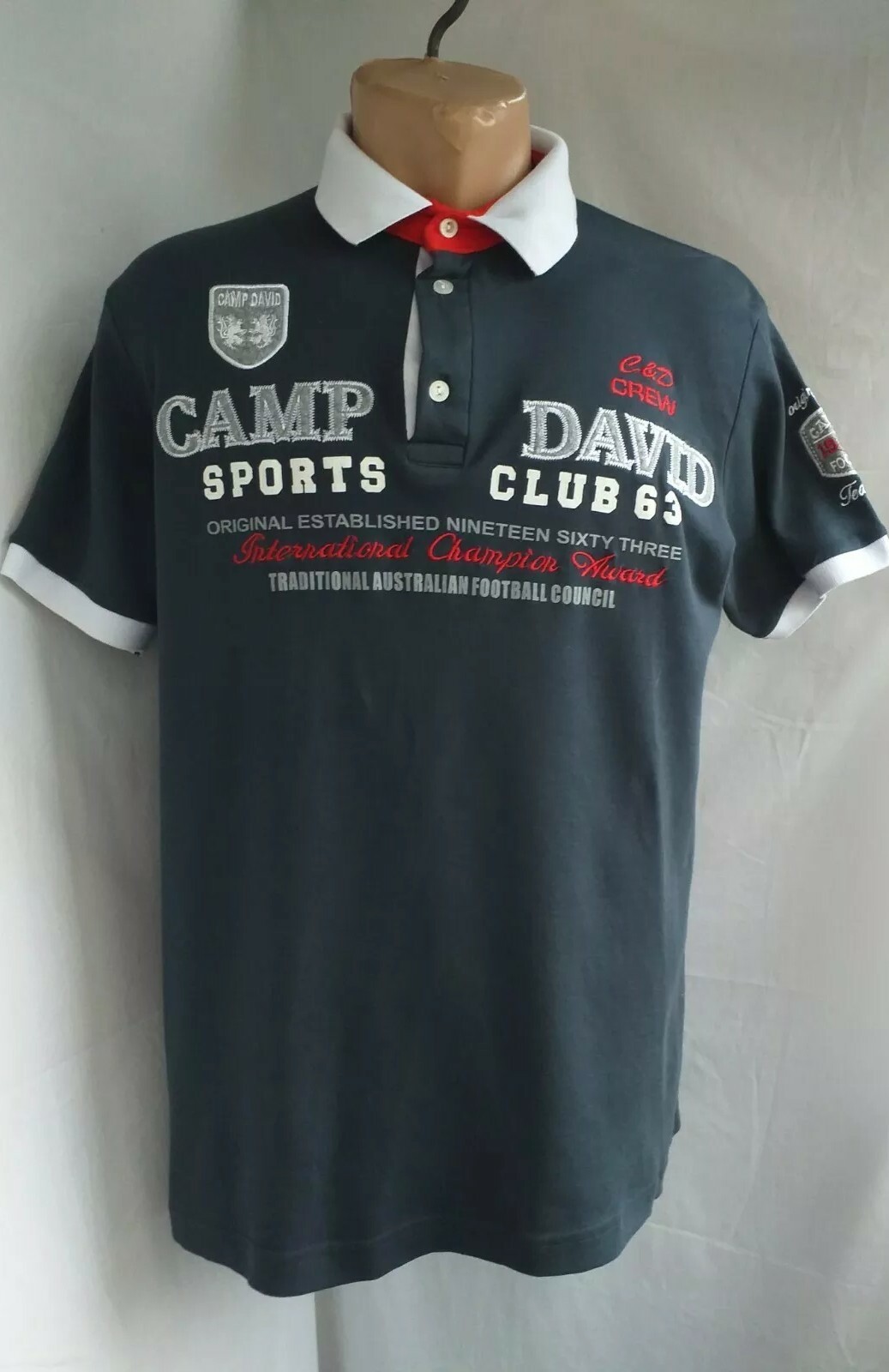 Camp David Mens Polo Shirt 1963 Blue Collared T-Shirt Embridered sz XL MINT