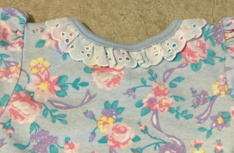 как выглядит Vintage Healthtex Floral and Lace On Blue Long Sleeve Romper Size 12 M фото