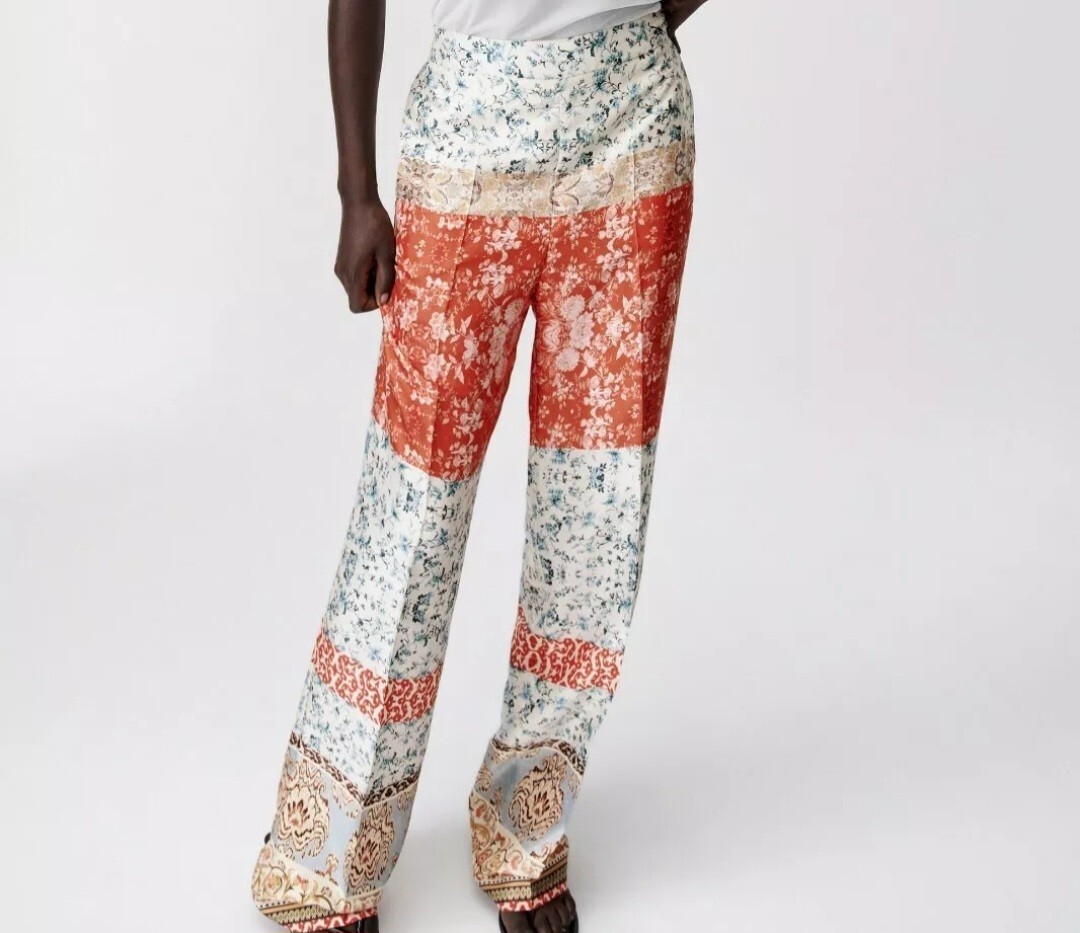ZARA NWT SS21 FLORAL FLOWY PRINT PANTS HIGH WAIST MEDIUM 7845/152/330