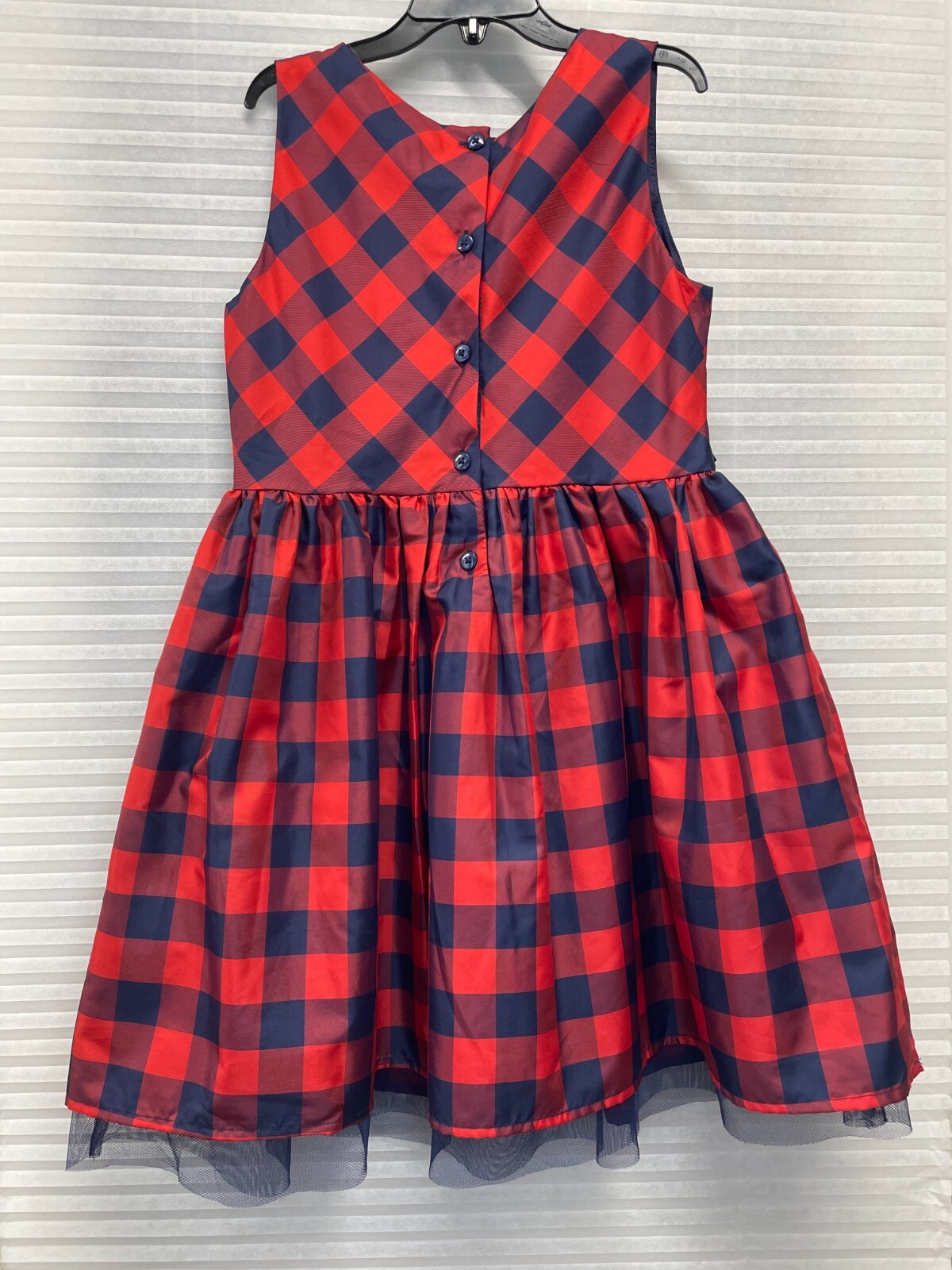 как выглядит Cat Jack Girls Plaid Dress Navy Blue Red Sleeveless Size M 7/8 фото