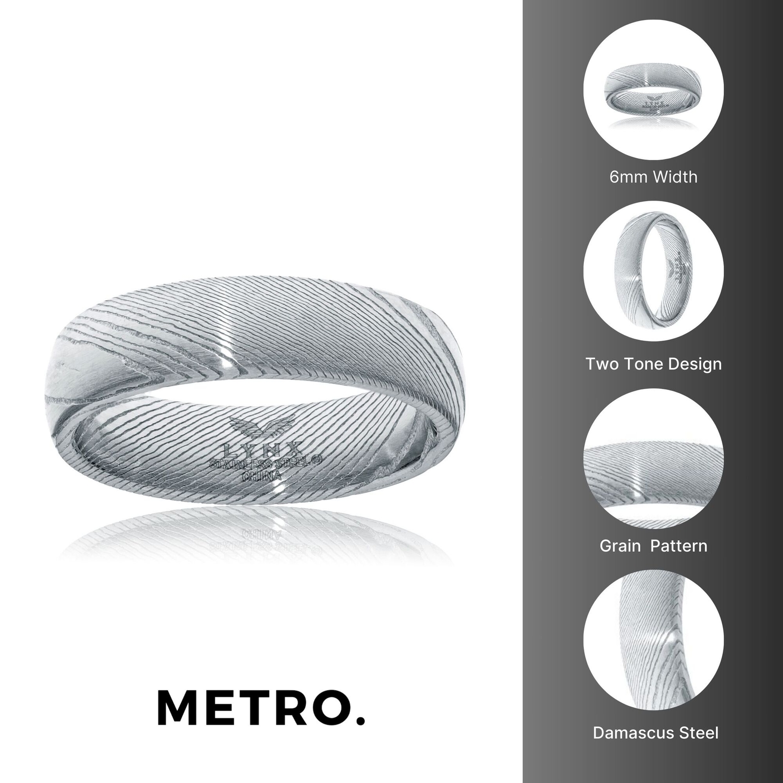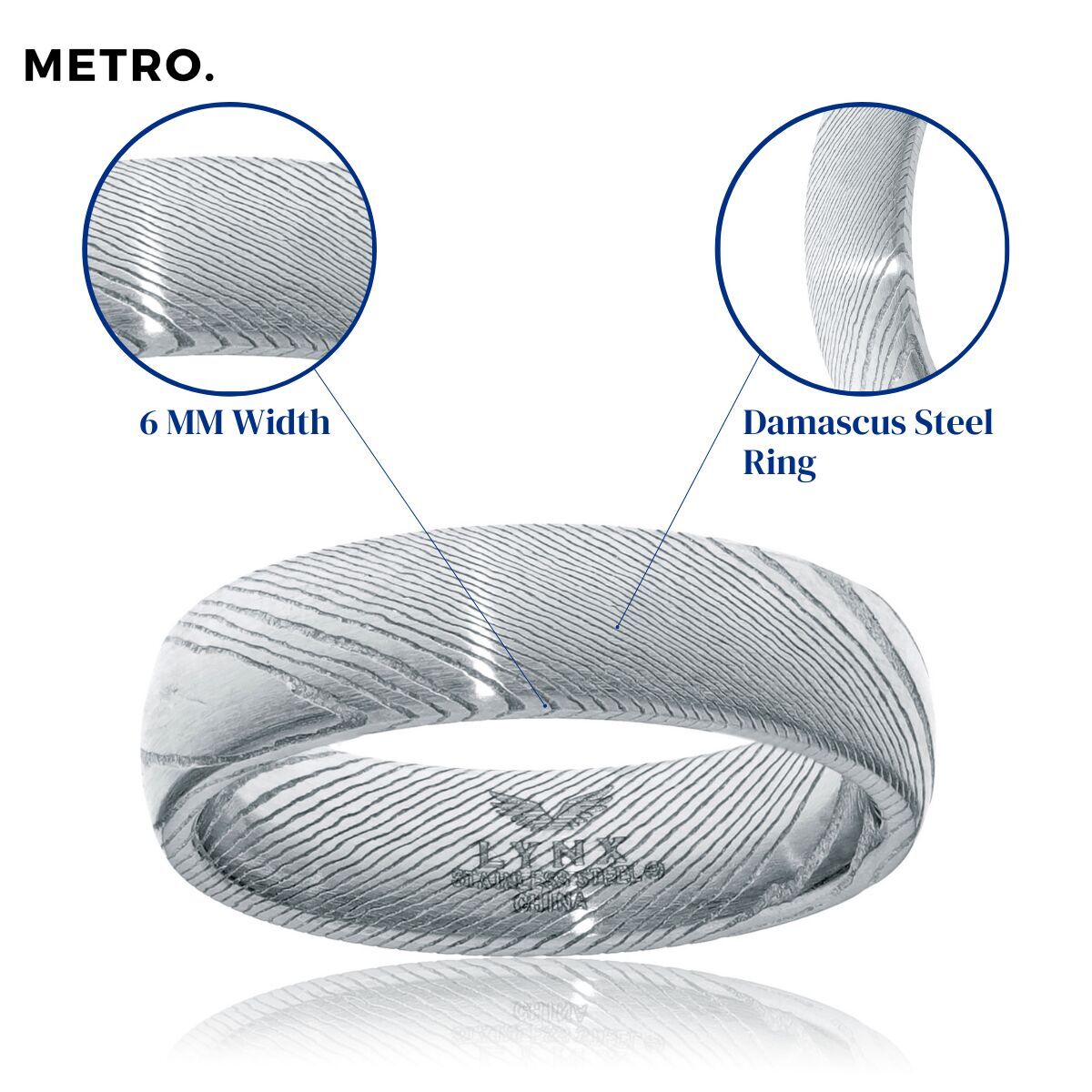 Damascus Stainless Steel Band Ring Unique Jewelry Gift for Men - 6 MM Size 10