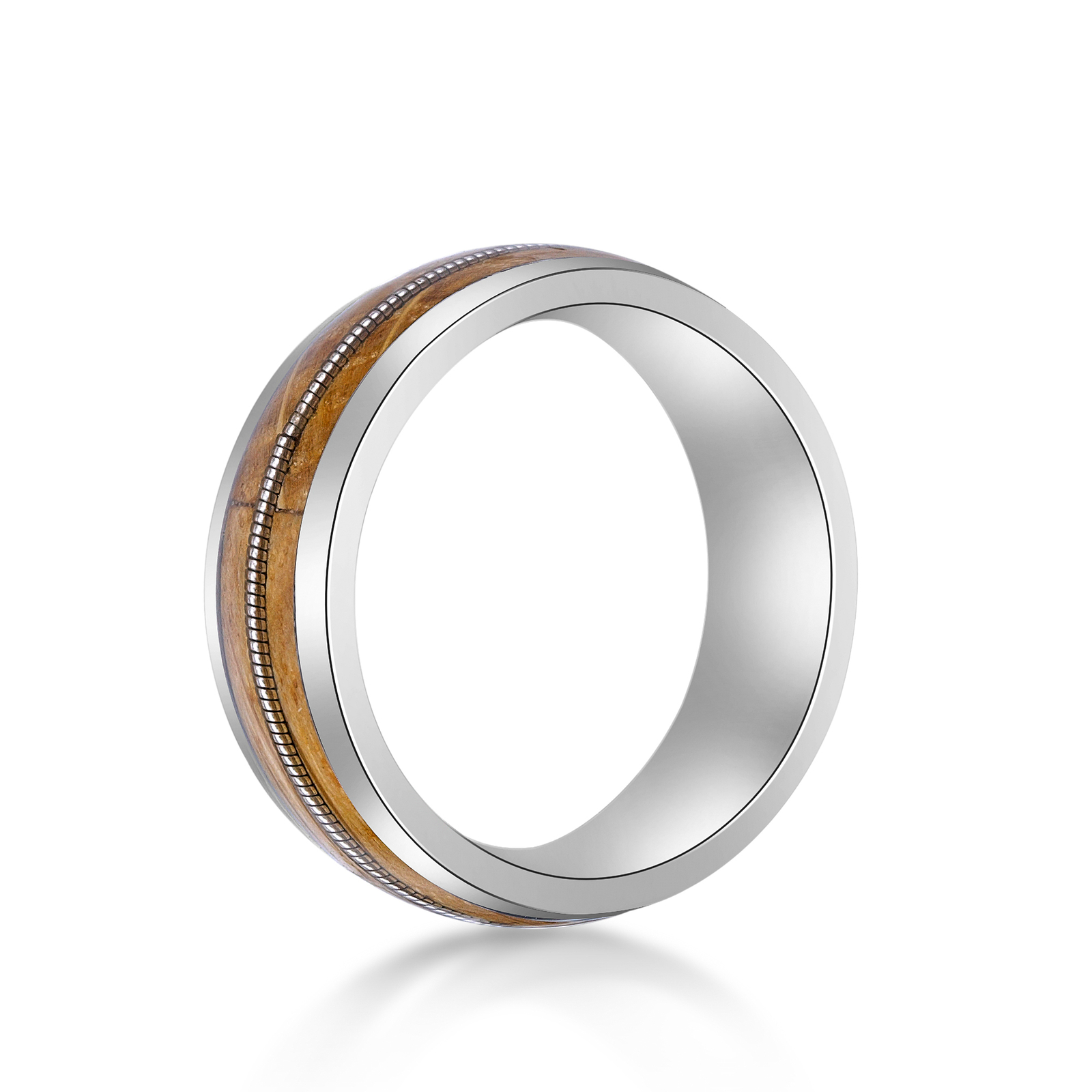 Men's Stainless Steel Ring with Whisky Barrel Wood Inlay and Clear Resin