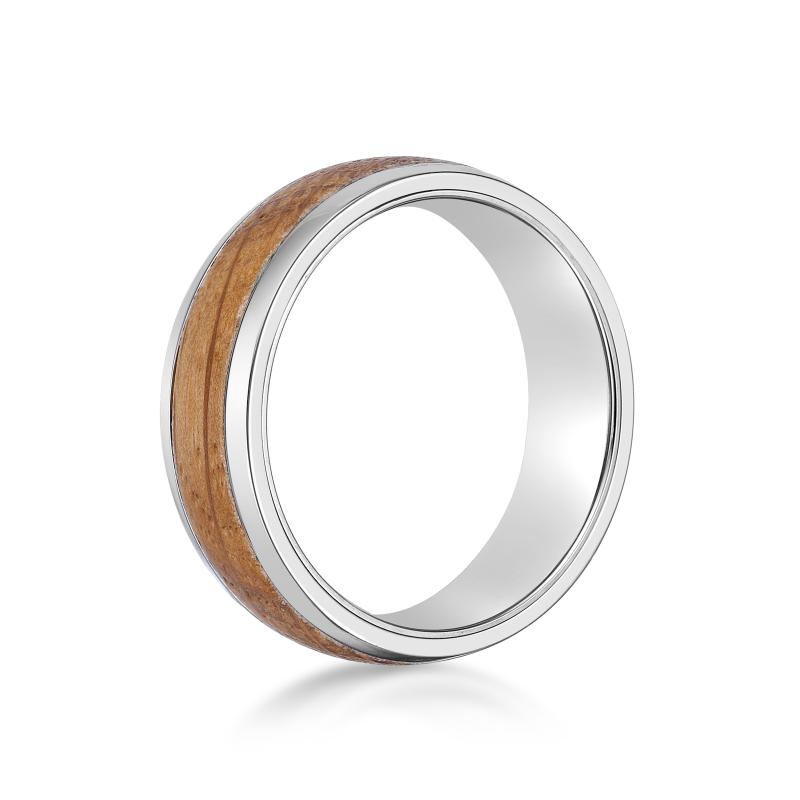 Stainless Steel Ring with Whiskey Barrel Wood Inlay and Clear Resin - Size 8-12