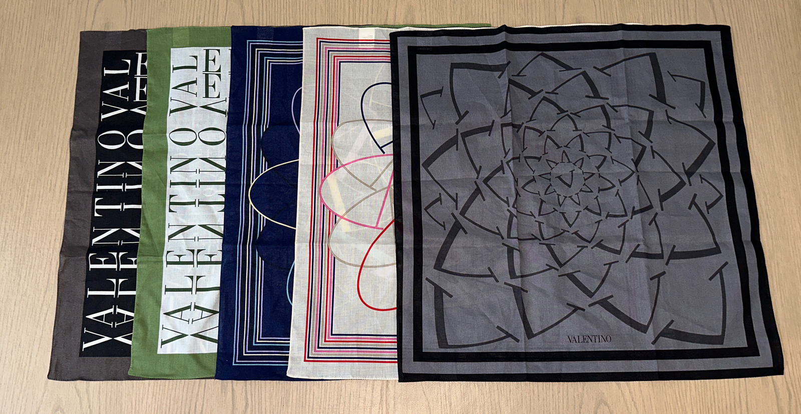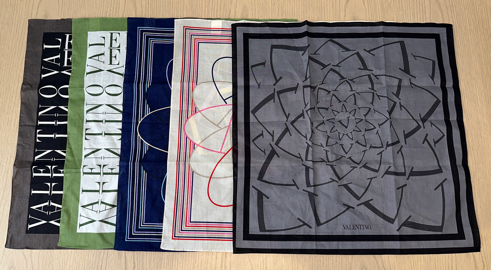 LOT OF 5 VALENTINO MULTI COLOR PRINTS HANDKERCHIEFS POCKET SCARFS MADE IN ITALY