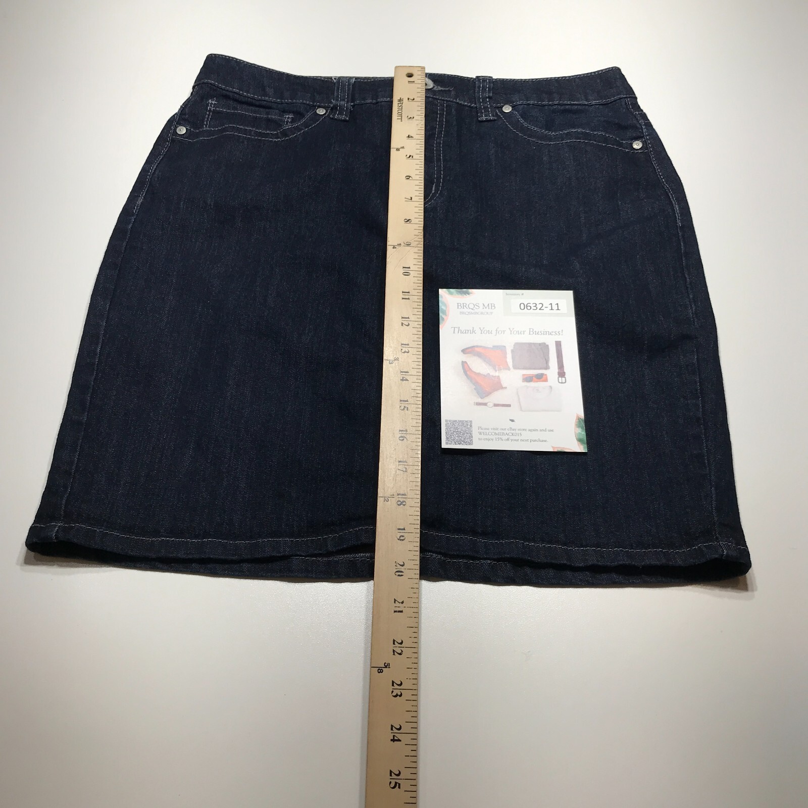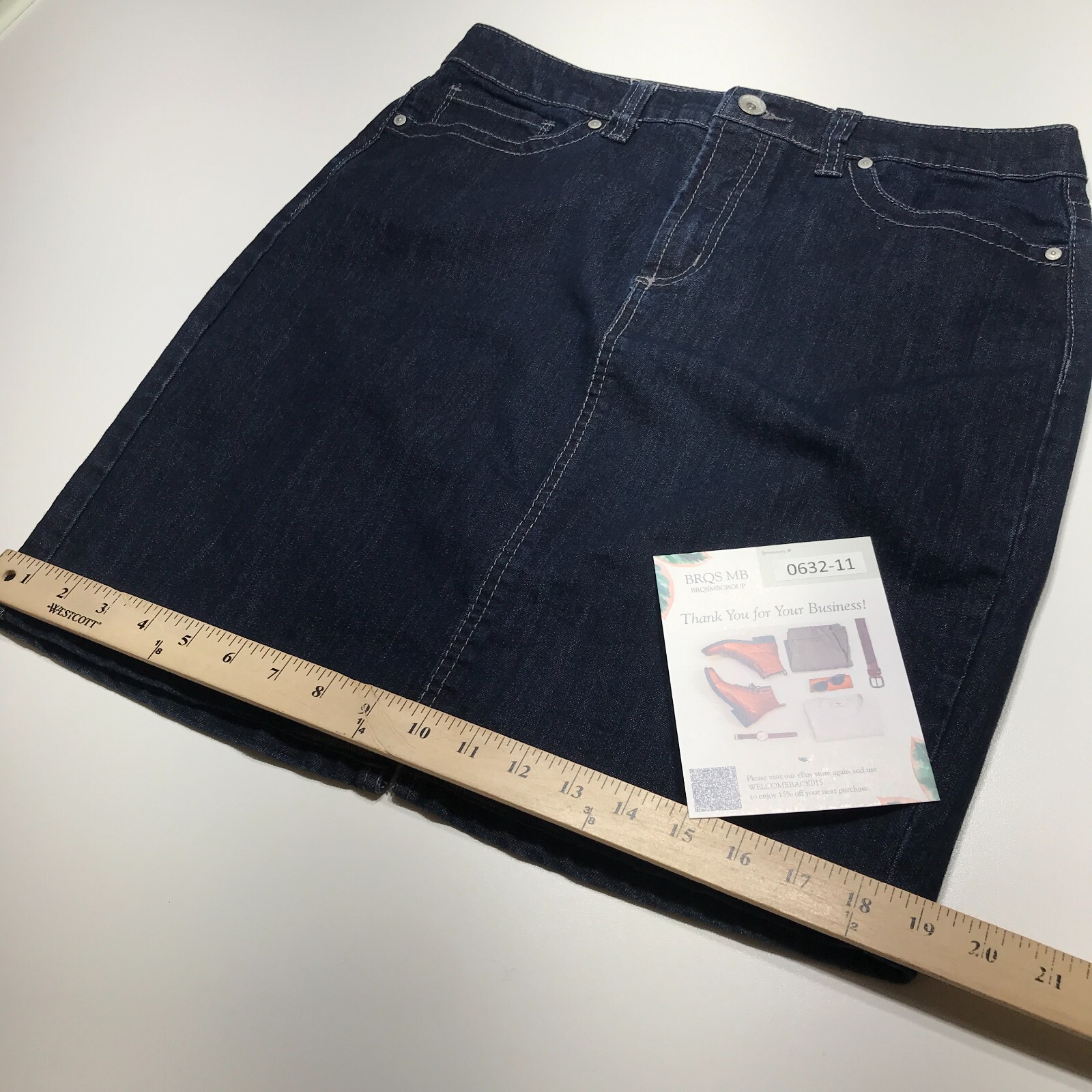 как выглядит Nine West Jeans Dark Stone Denim Straight Skirt Stretch Zip Fly Day Out Size 10 фото