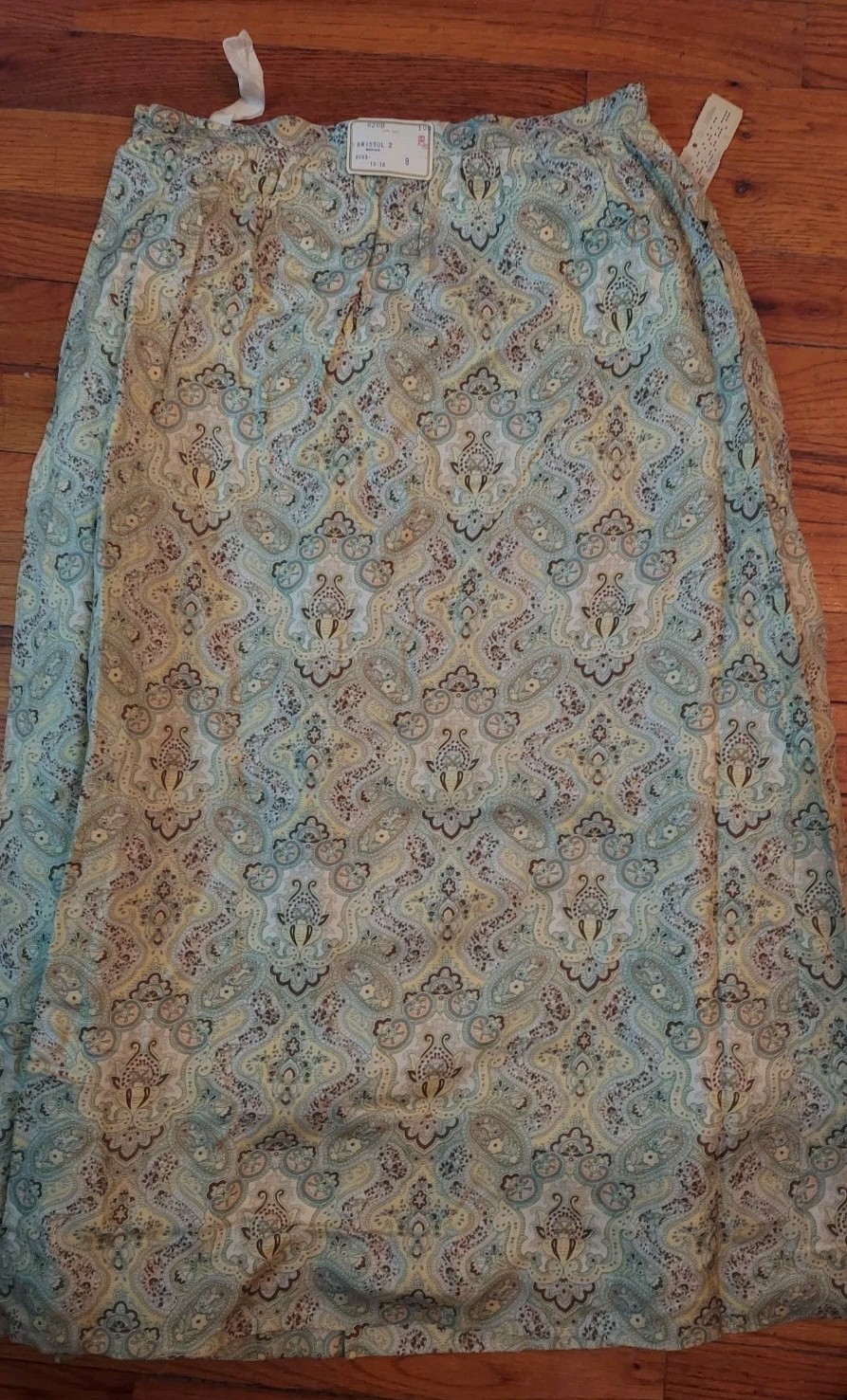 NWT Ladies VINTAGE Skirt 100 Silk Long Midi Green Paisley Spring Bristol