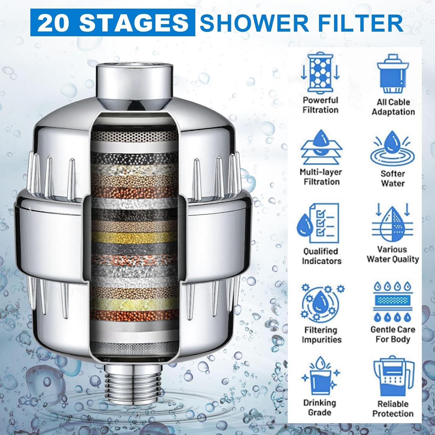 High Pressure Filtered Showerhead, Rainfall Filter Showerhead with Handheld