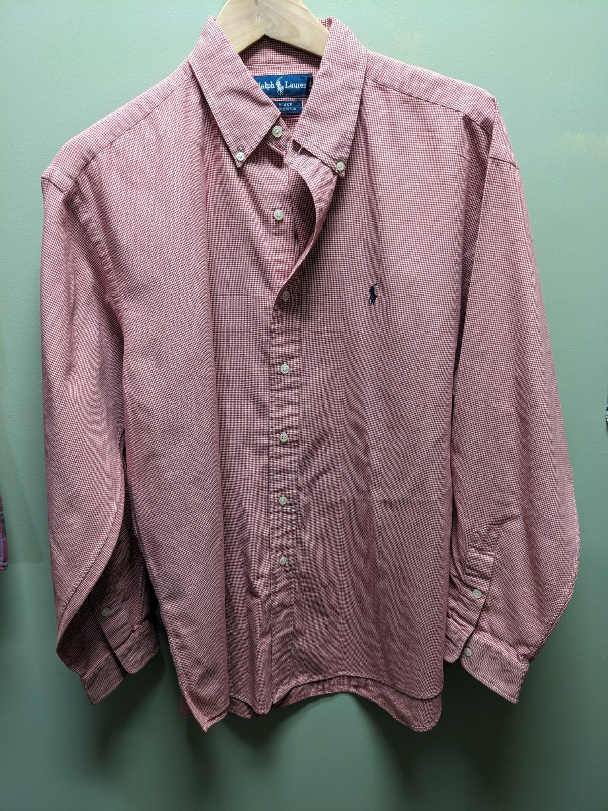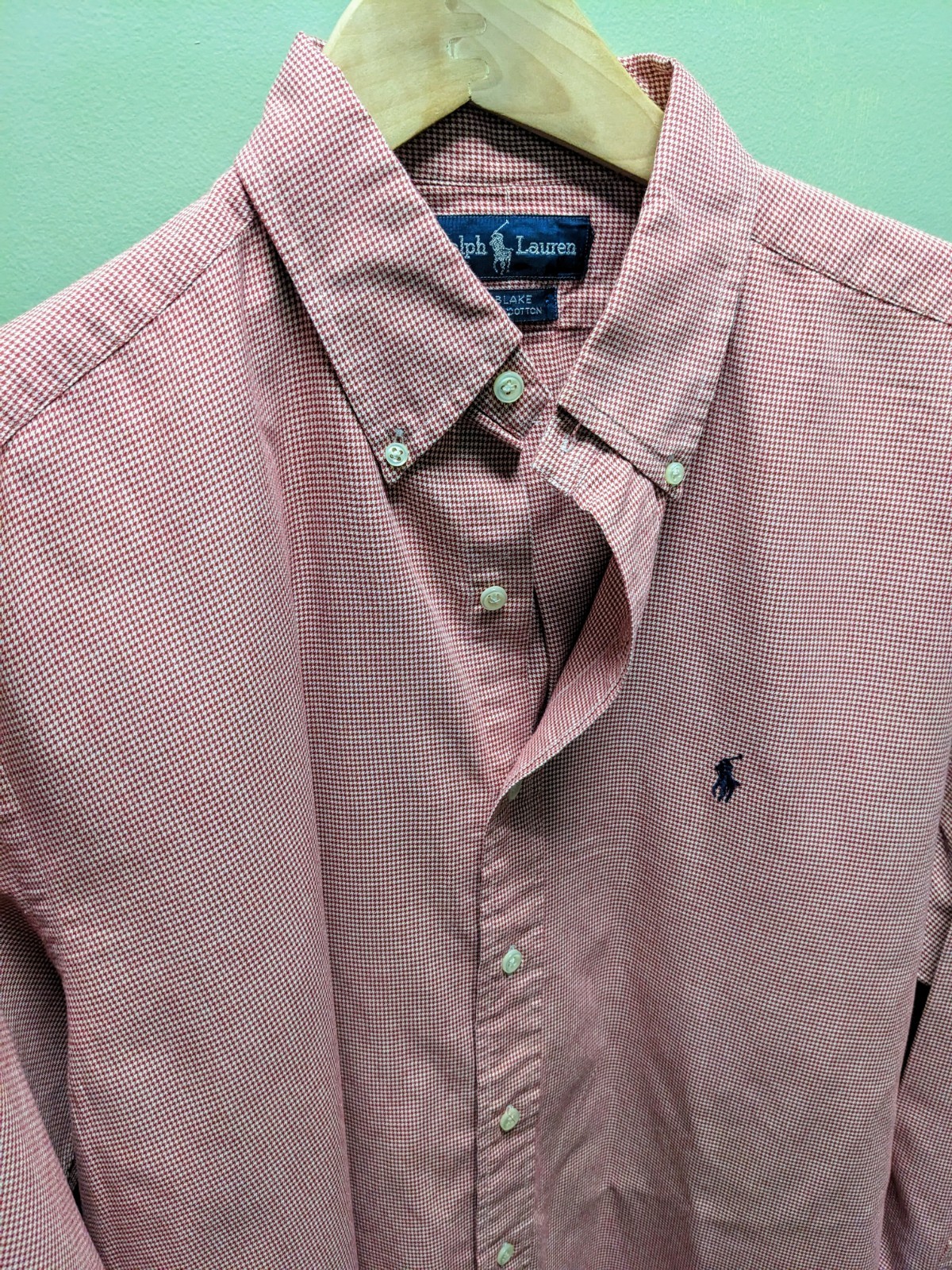 как выглядит Vintage Polo Ralph Lauren Blake Oxford Shirt Large Red White Hounds Tooth фото