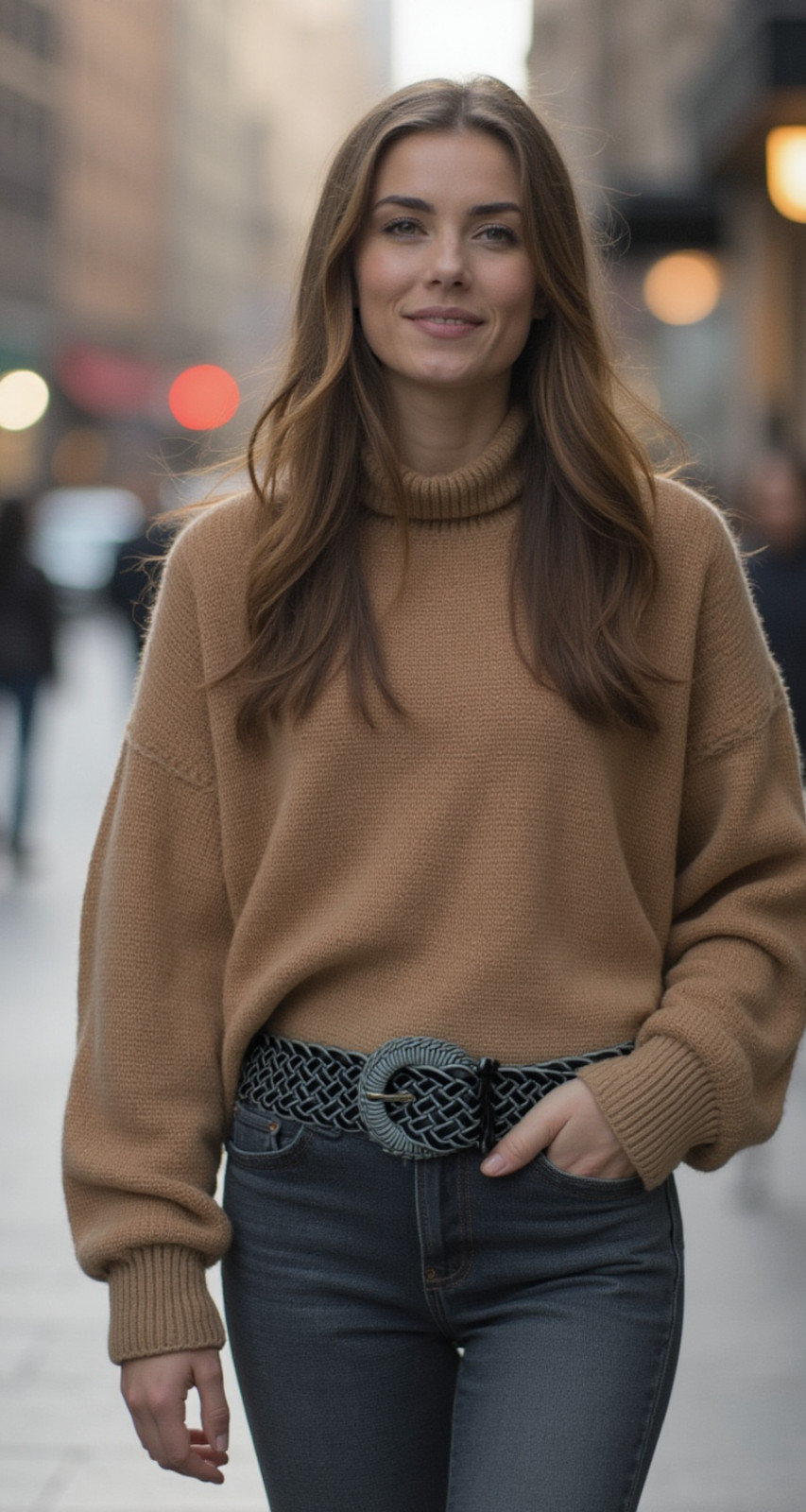 Cool New Women Faux Leather Braided Waistband Waist Hip Casual Pant Belt S M