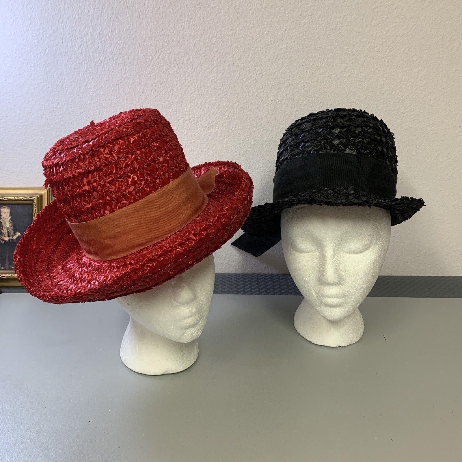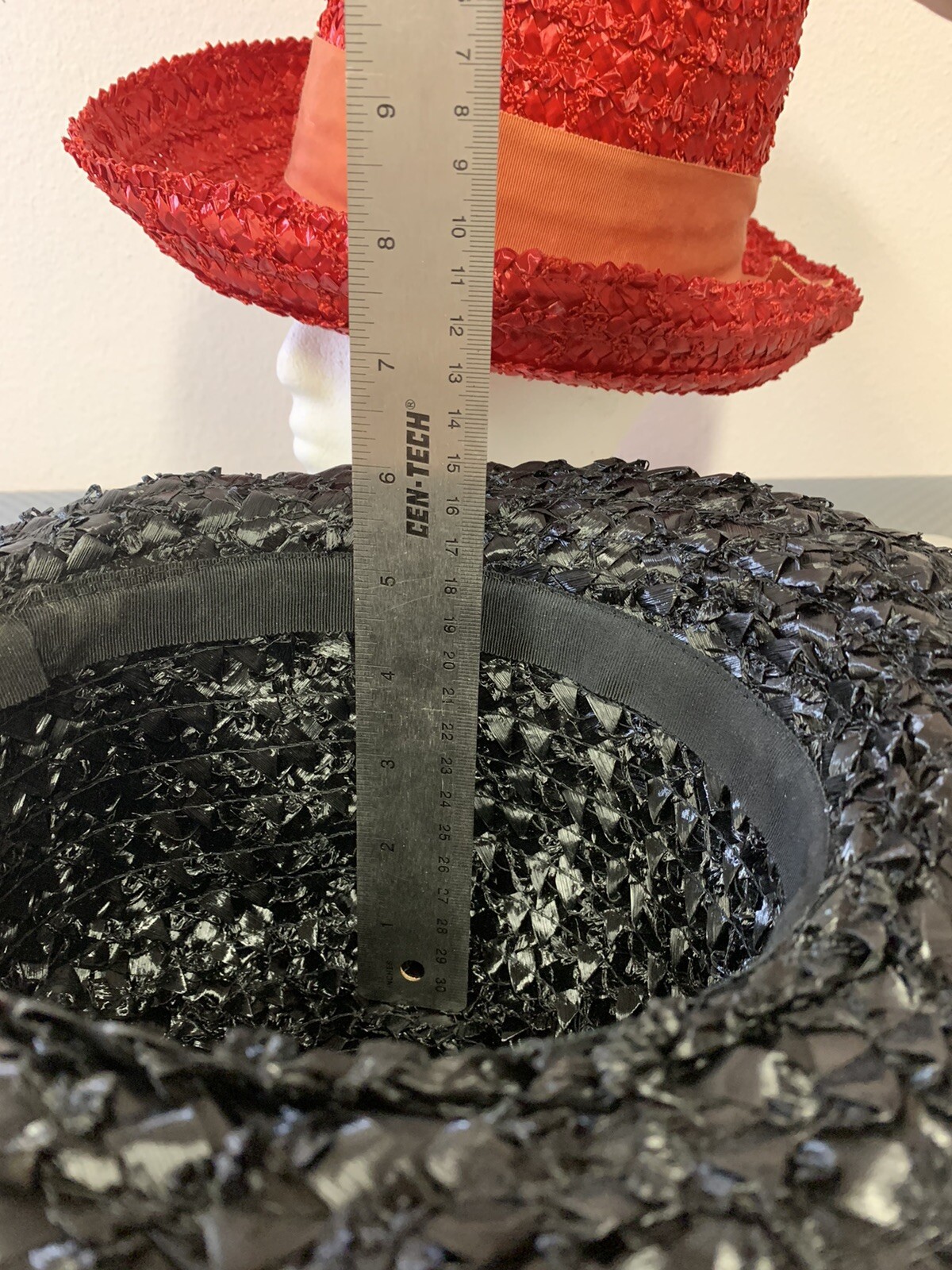 VINTAGE RED BLACK Bucket Woven Straw Hat Matching Wide Ribbon