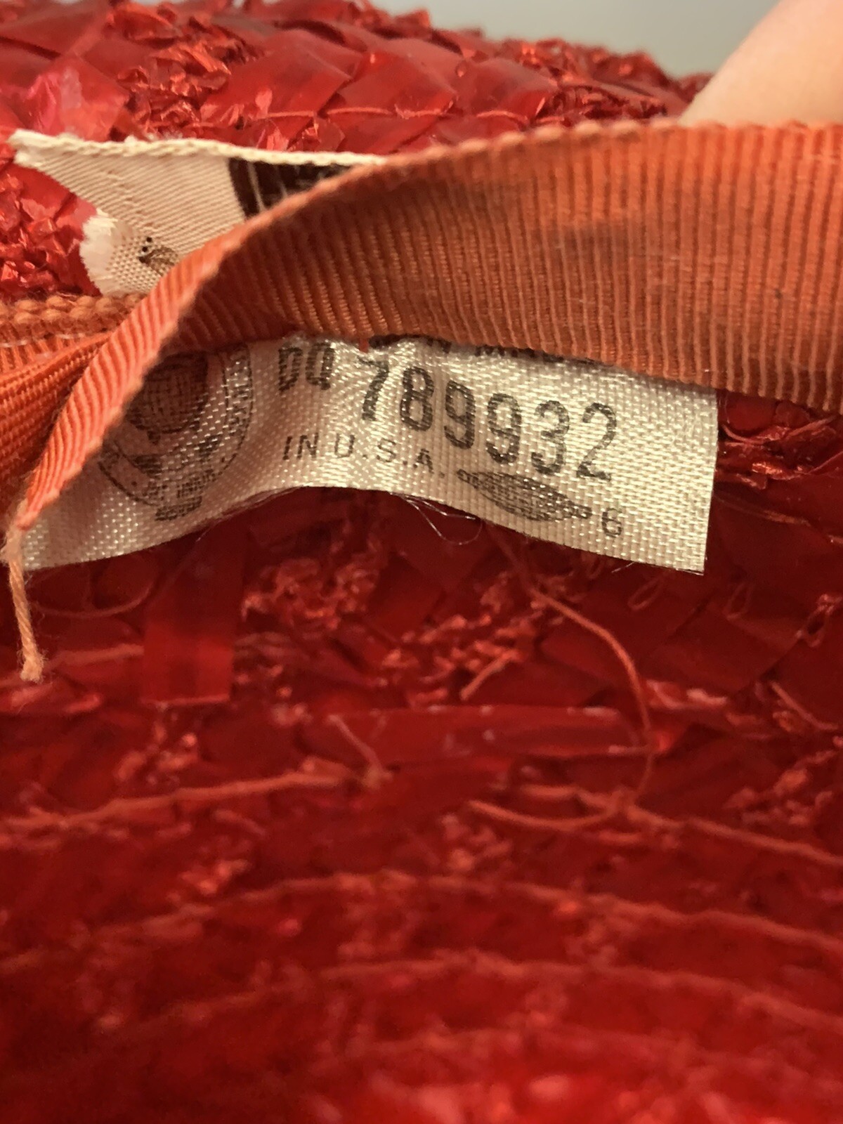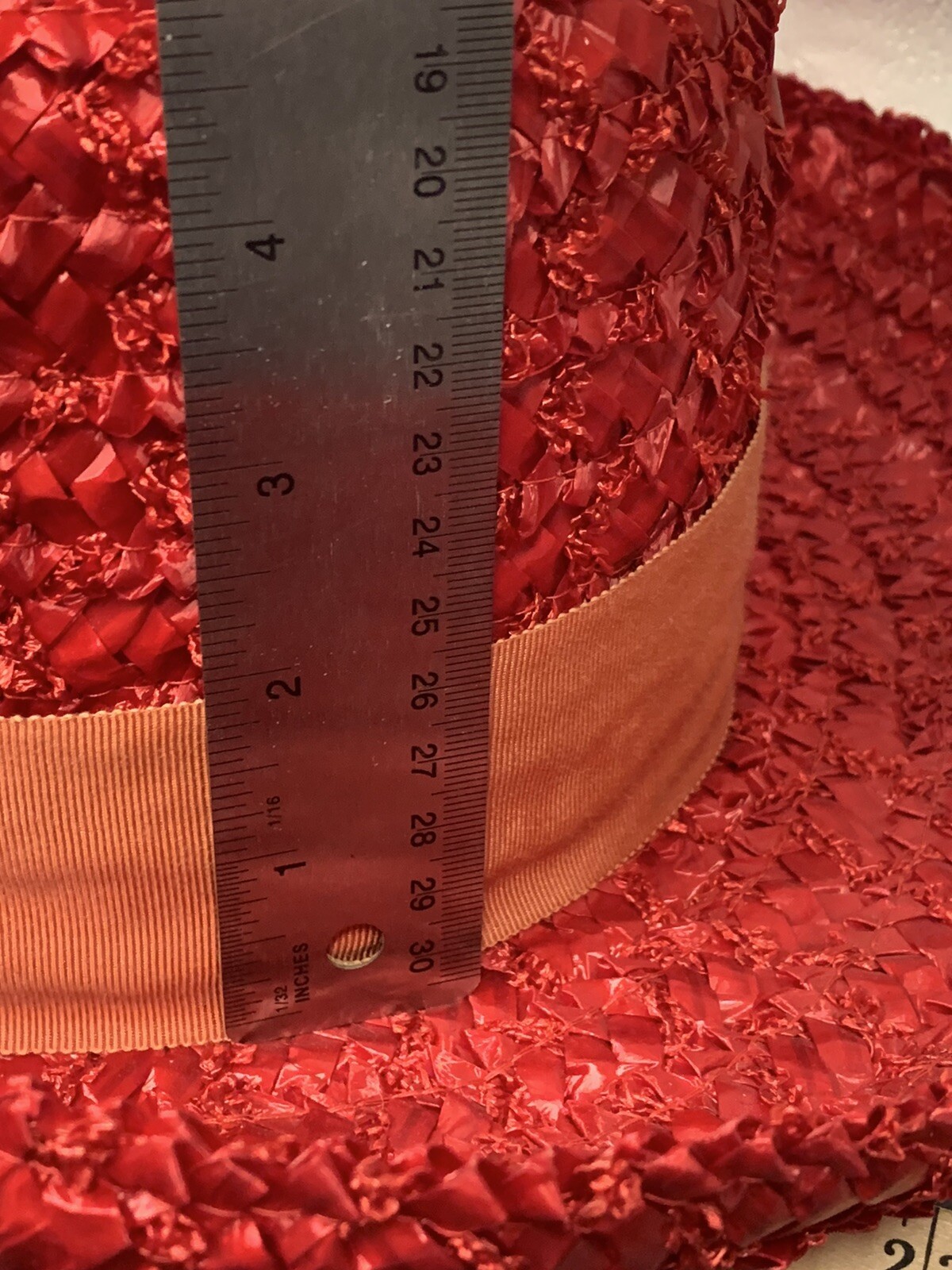 как выглядит VINTAGE RED BLACK Bucket Woven Straw Hat Matching Wide Ribbon фото