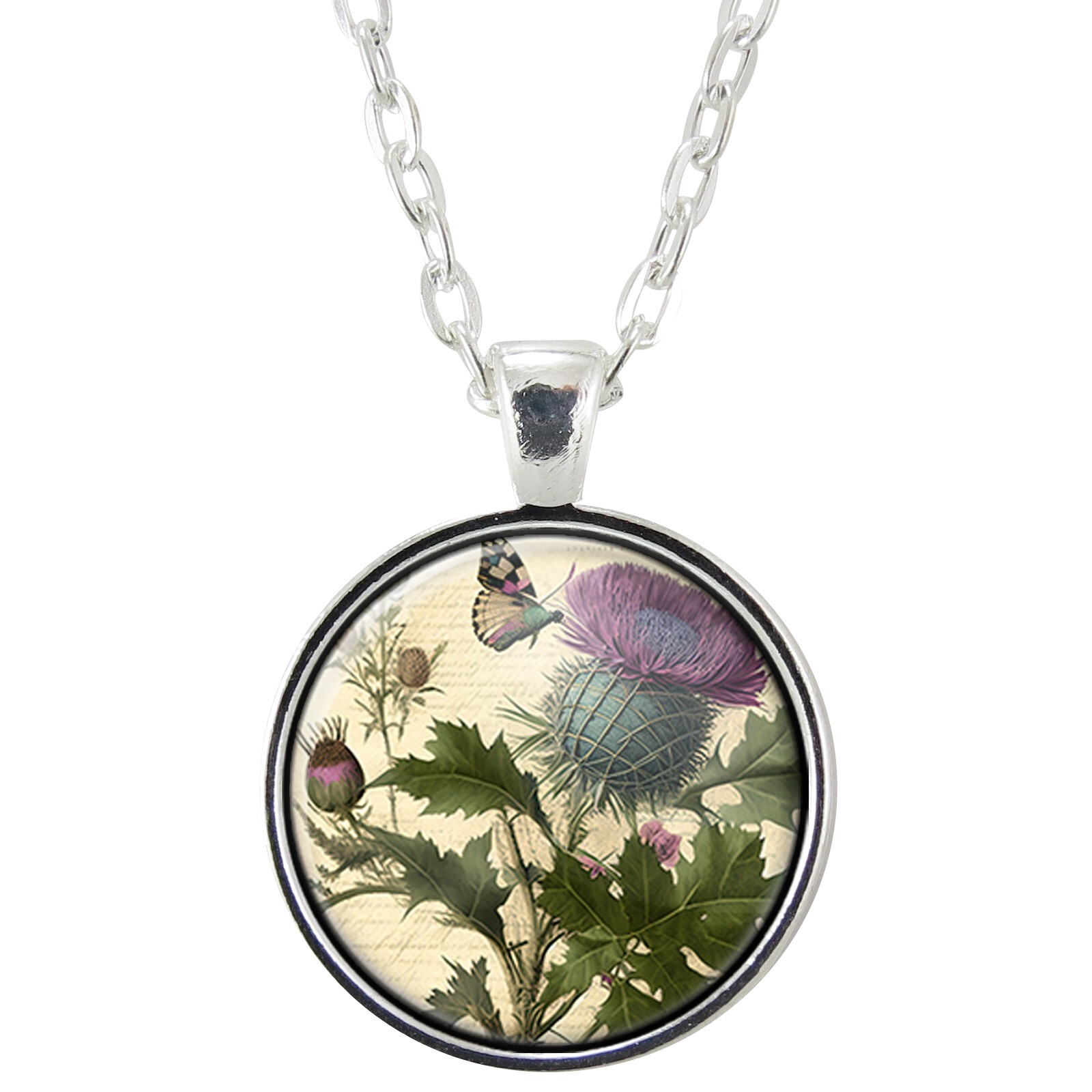 Scottish Thistle Flower Pendant Necklace, Scotland Flower Handmade Jewelry