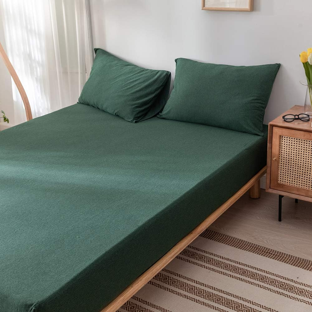 Jersey Knit Cotton Fitted Sheet 3 Piece - Ultra Soft, Wrinkle Free and Breathabl