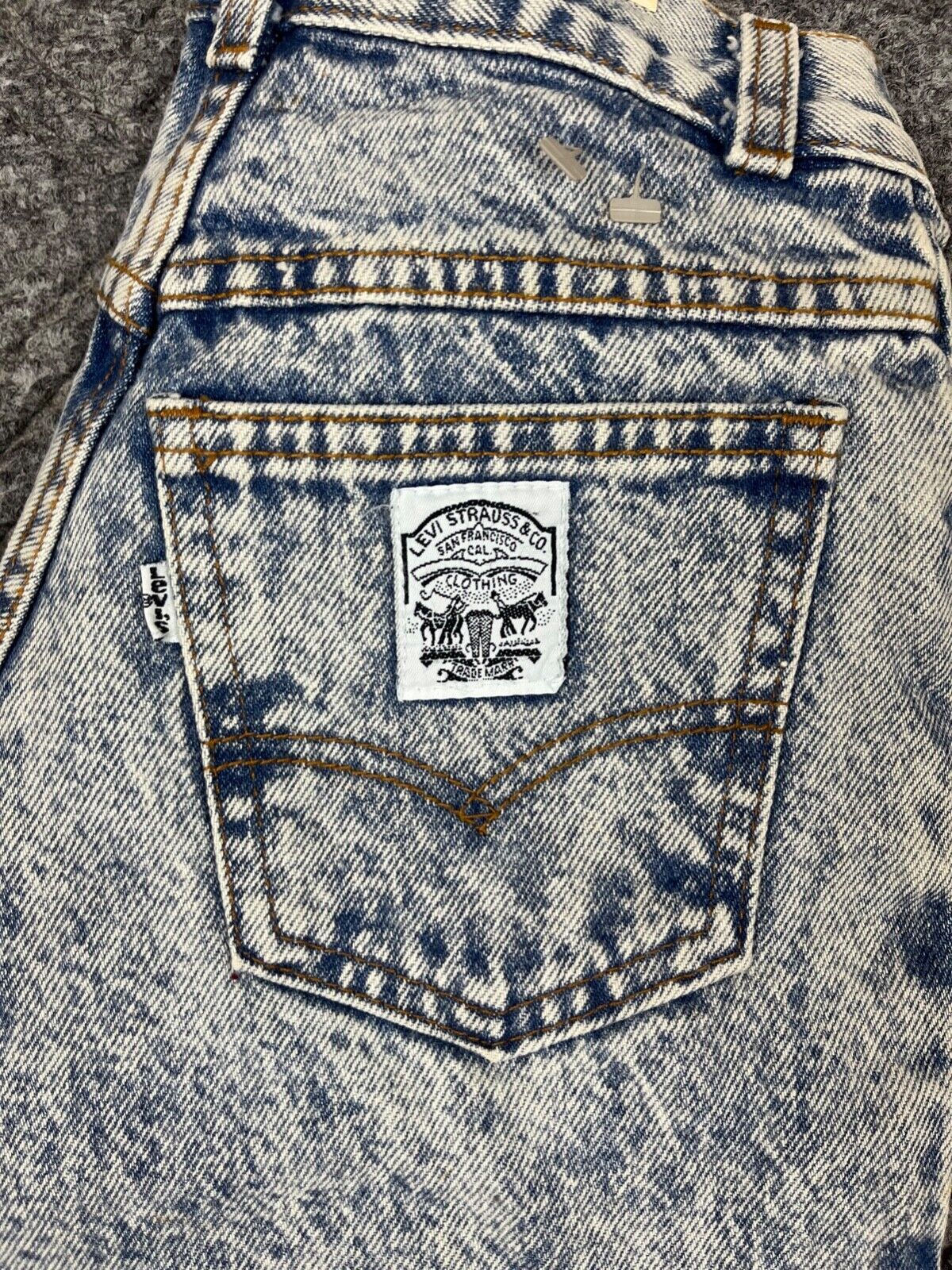 как выглядит Vintage 70s Levis Jeans Kids Size 21x28 Light Wash White Tab NOS фото