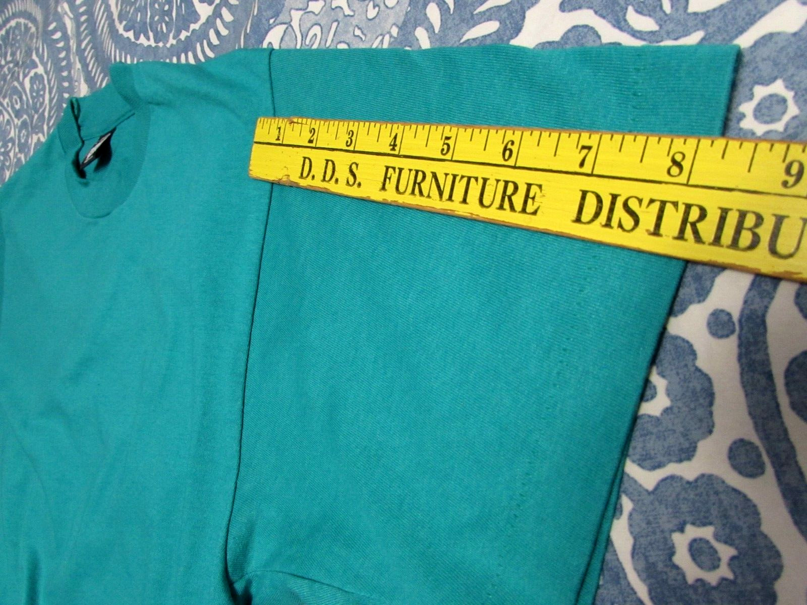 как выглядит VTG Screen Star Best T-shirt Men Large Teal Blank 50/50 Single Stitch USA Made фото