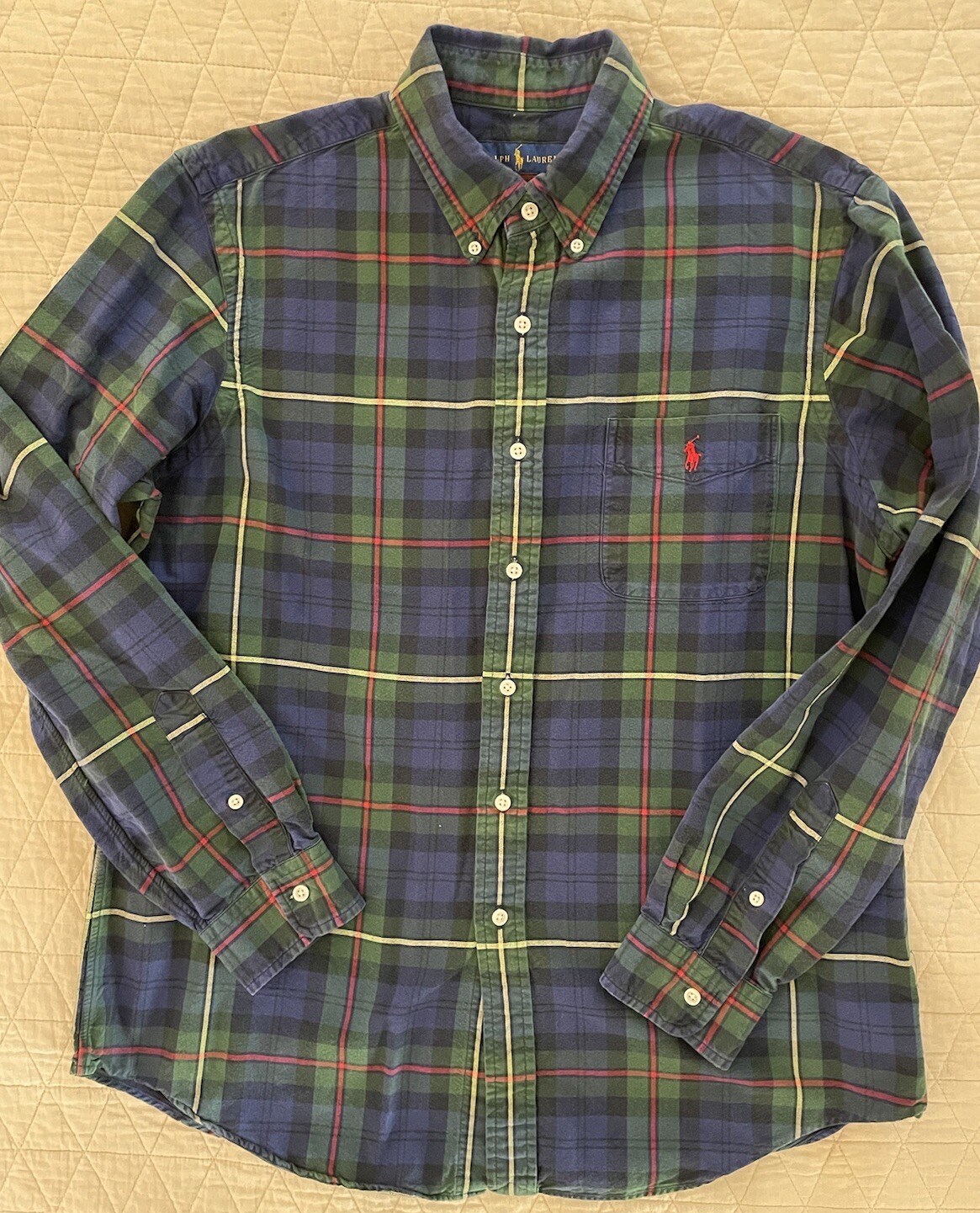 как выглядит Polo Ralph Lauren Button Down Shirt in Multicolor Windowpane Check Plaid Size L фото