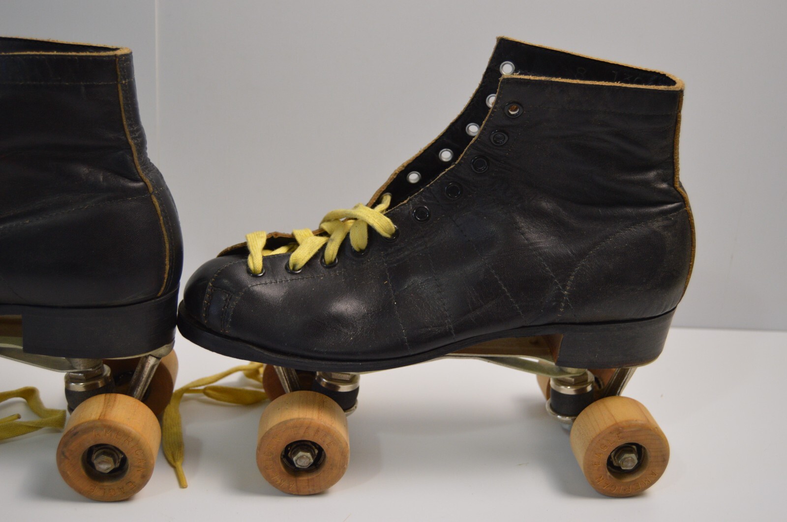 Vintage Men's Leather Roller Skates Wooden Am Eagle Wood Wheels Size 7 Box
