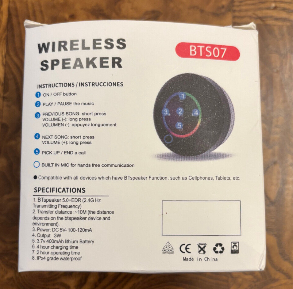 как выглядит New Wireless Speaker BTS07 Pulsating LED  Black NIB фото