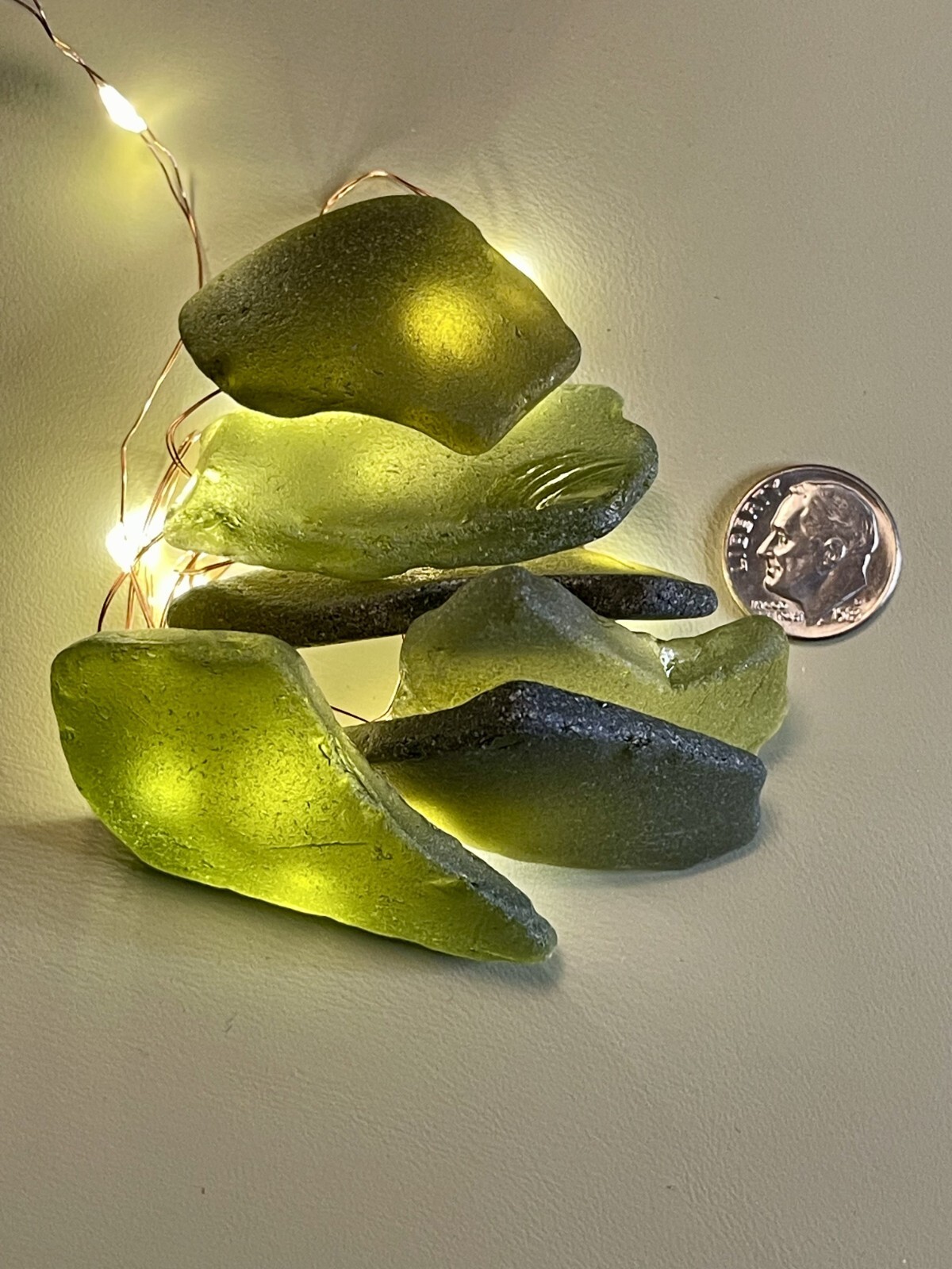 Gr 2141 Genuine Surf Tumbled Sea Glass/Olive Green Frosted Beach Glass