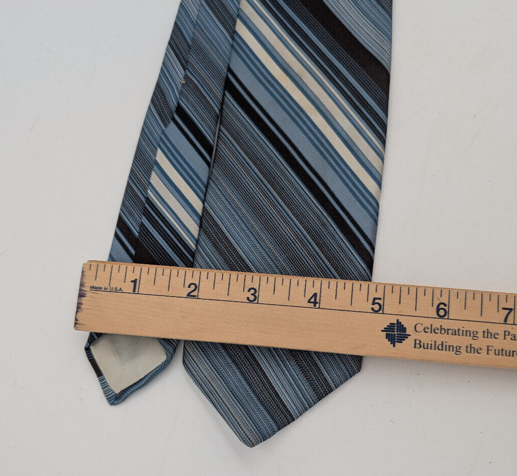 как выглядит Wemlon by Wembley Vintage Mid Century Mens Neck Tie Blue Diagonal Stripe фото