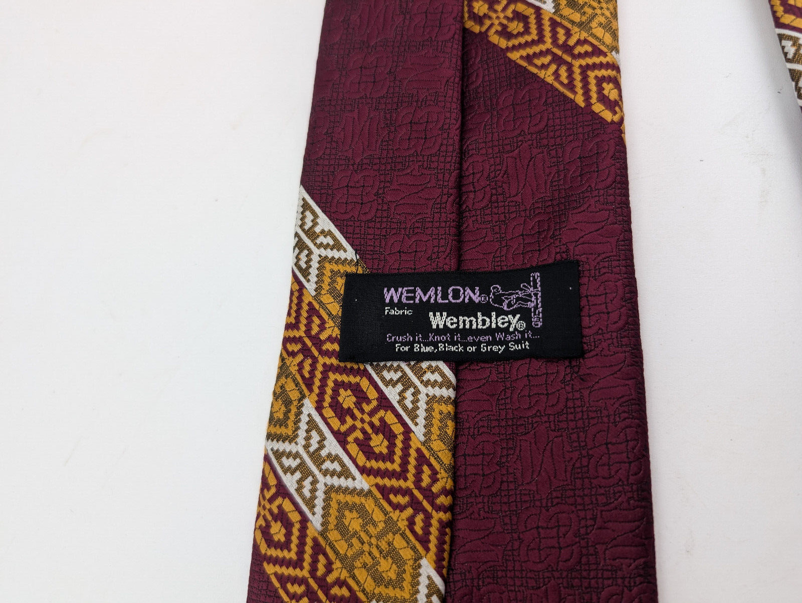 Wemlon by Wembley Vintage Mid Century Mens Neck Tie Maroon Gold