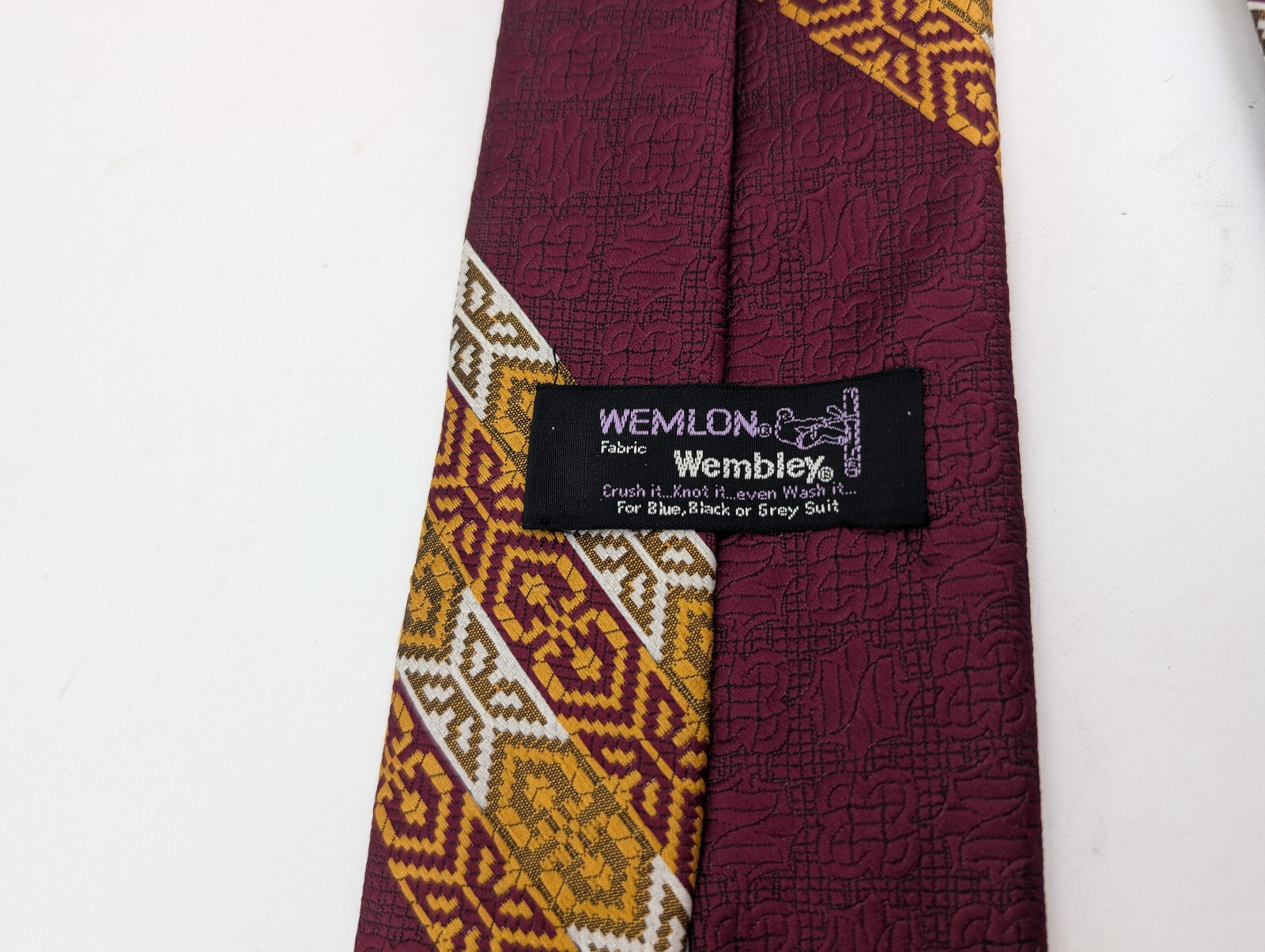 как выглядит Wemlon by Wembley Vintage Mid Century Mens Neck Tie Maroon Gold фото